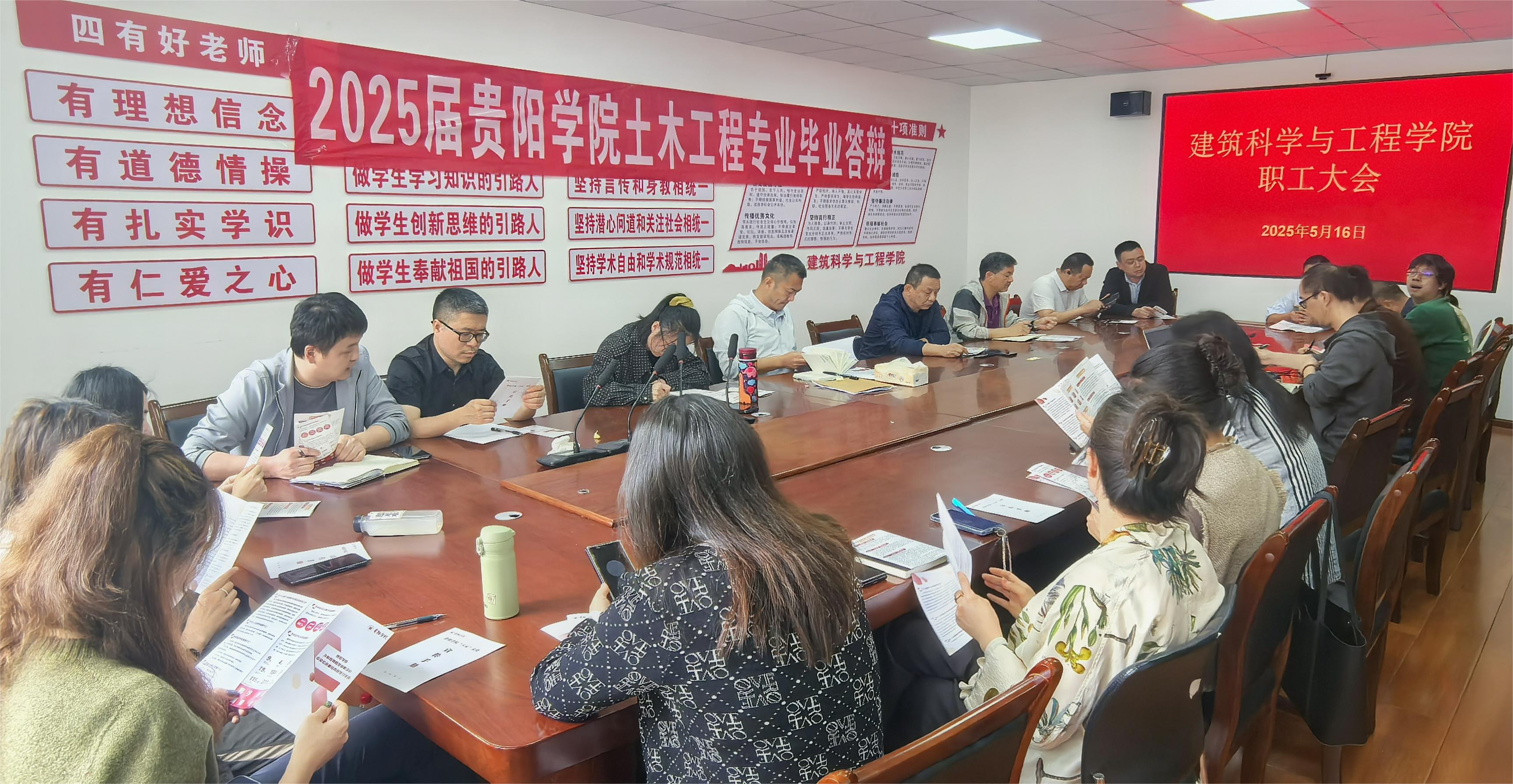 建筑科学与工程学院于2025年5月16日中午在实验楼C栋C306会议室召开第3次本科教育教学审核评估工作推进会,学院党政领导班子成员、全体教职工参加会议,院长刘军主持会议。