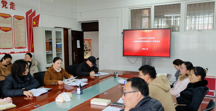 2025年3月18日,食品科学与工程学院召开审核评估工作推进会,就审核评估各工作组的工作内容等进行交流并提出要求,并分类学习《beat365英国官网网站教学管理文件汇编》中相关内容,汇报毕业设计(论文)、人才培养方案检查执行情况。