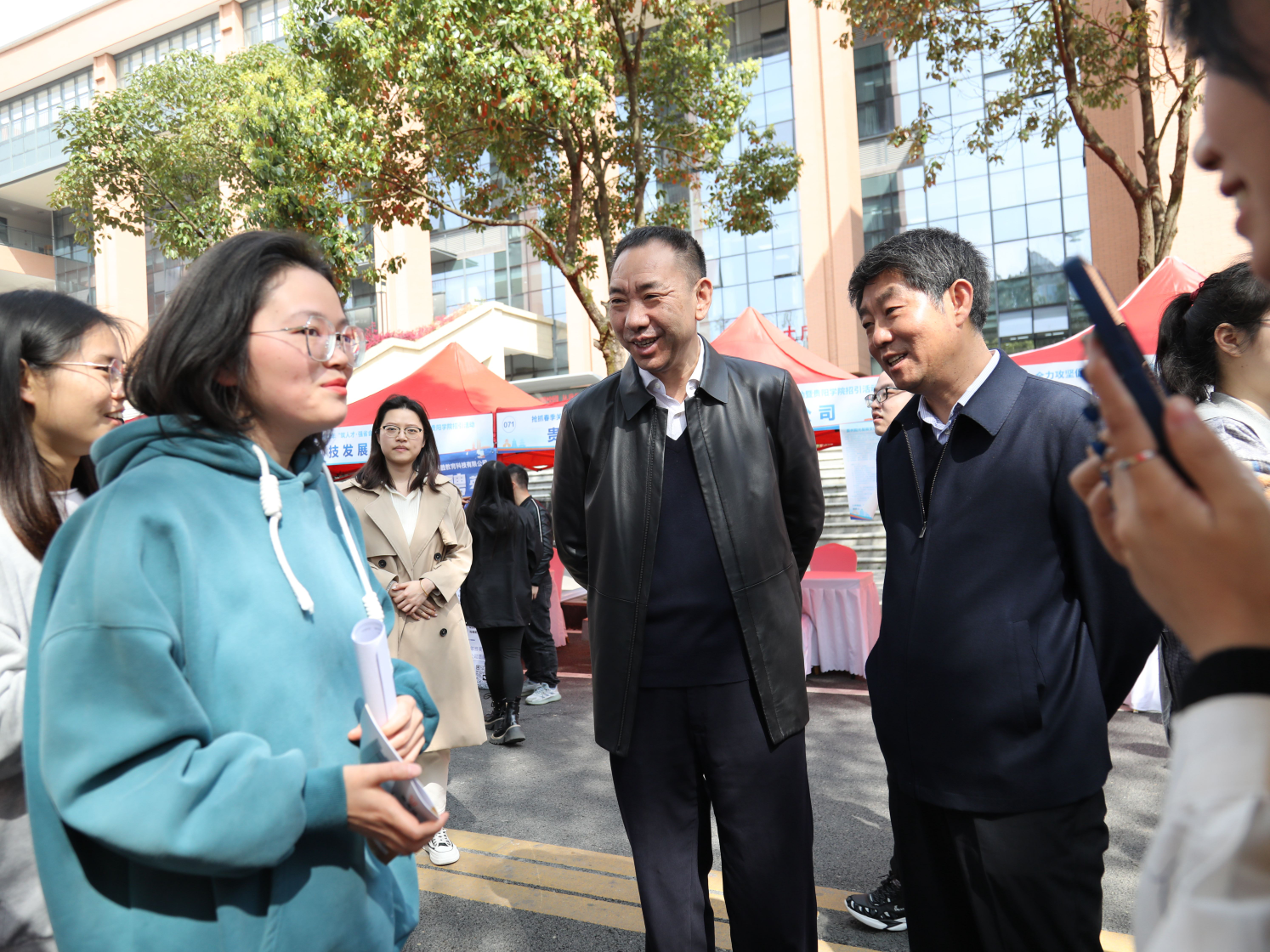 贵阳市委常委、市委政法委书记彭容江,学校党委书记吕保平,副校长汪建初、李灿等领导到现场与毕业生和用人单位亲切交谈,了解用工需求。贵阳市委政法委相关负责人,学校专业学院领导、就业指导老师、毕业班辅导员深入到招聘会现场,听取学生求职意愿,对毕业生进行现场分类指导、重点推荐。
