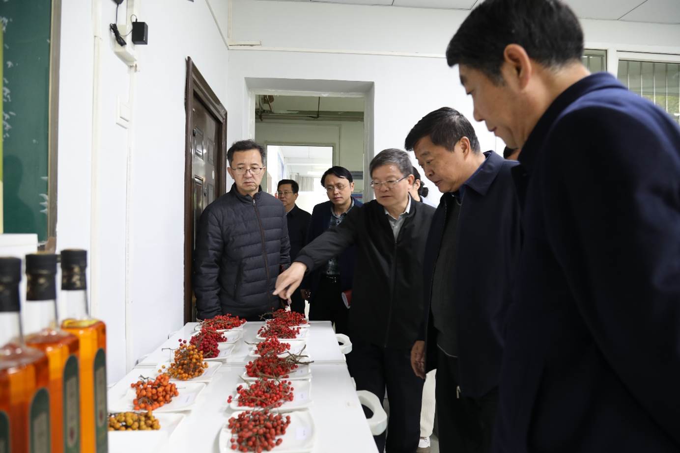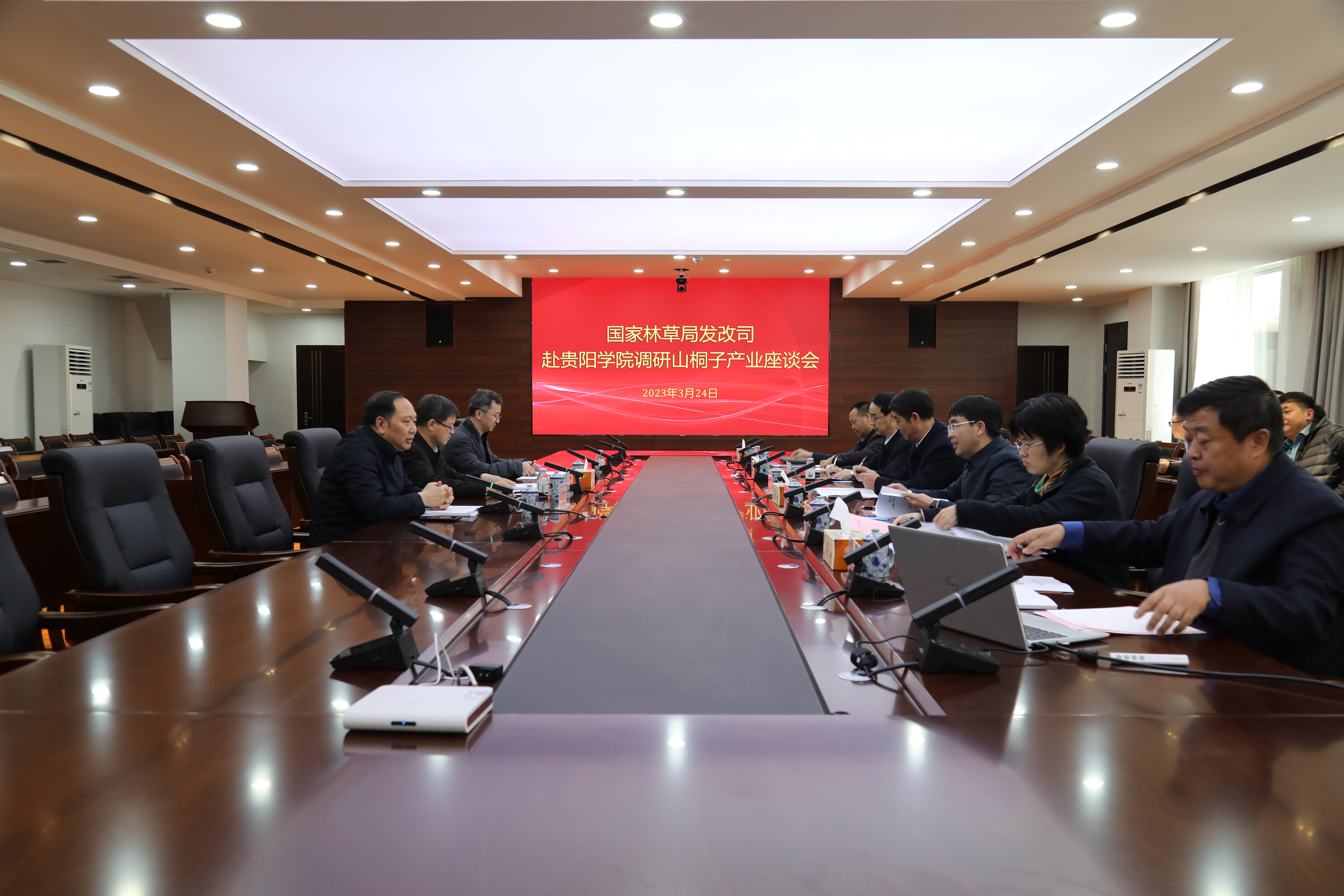 2023年3月24日,国家林草局发改司司长刘树人,木材行业处处长李斌,贵州省林业局副局长向守都,总工程师侯拥军,对外合作与产业处处长胡志伟一行,到beat365英国官网网站调研木本油料山桐子产业发展情况,并召开座谈会。beat365英国官网网站党委书记吕保平,副校长李灿陪同调研并出席座谈会,食品与制药工程学院、科技处相关负责人参加座谈会,会议由向守都主持。