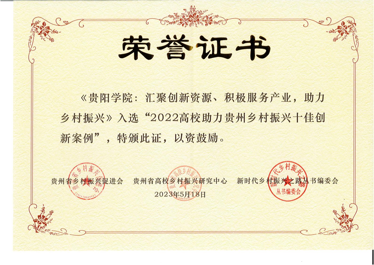 2023年5月18日,“文旅融合”“校旅结合”助力中国式农业农村现代化学术研讨会在安顺学院顺利举办。会上公布的2022贵州乡村振兴优秀创新案例征集活动获奖名单中,beat365《beat365英国官网网站:汇集创新资源、积极服务产业,助力乡村振兴》入选获评“2022贵州乡村振兴十佳创新案例”。