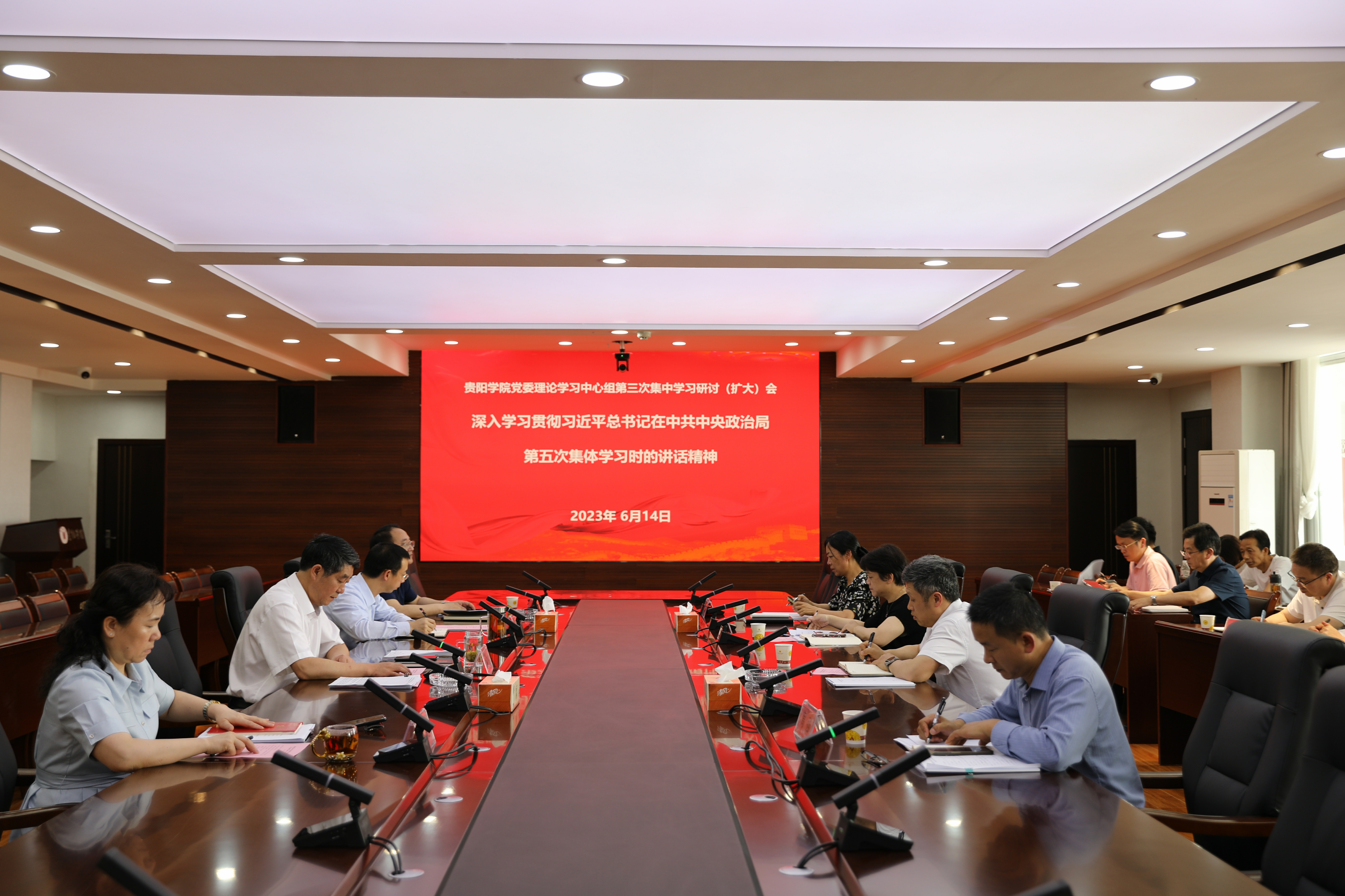 6月14日,beat365英国官网网站2023年党委理论学习中心组第三次集中学习研讨(扩大)会在九思楼八楼会议室举行。校党委书记吕保平主持学习研讨,党委副书记、校长邓朝勇,校领导焦艳、赵福菓、马力,党委委员周强、许晓璐出席学习研讨。校领导王蜀黔、校直部门代表、各二级党委书记列席。