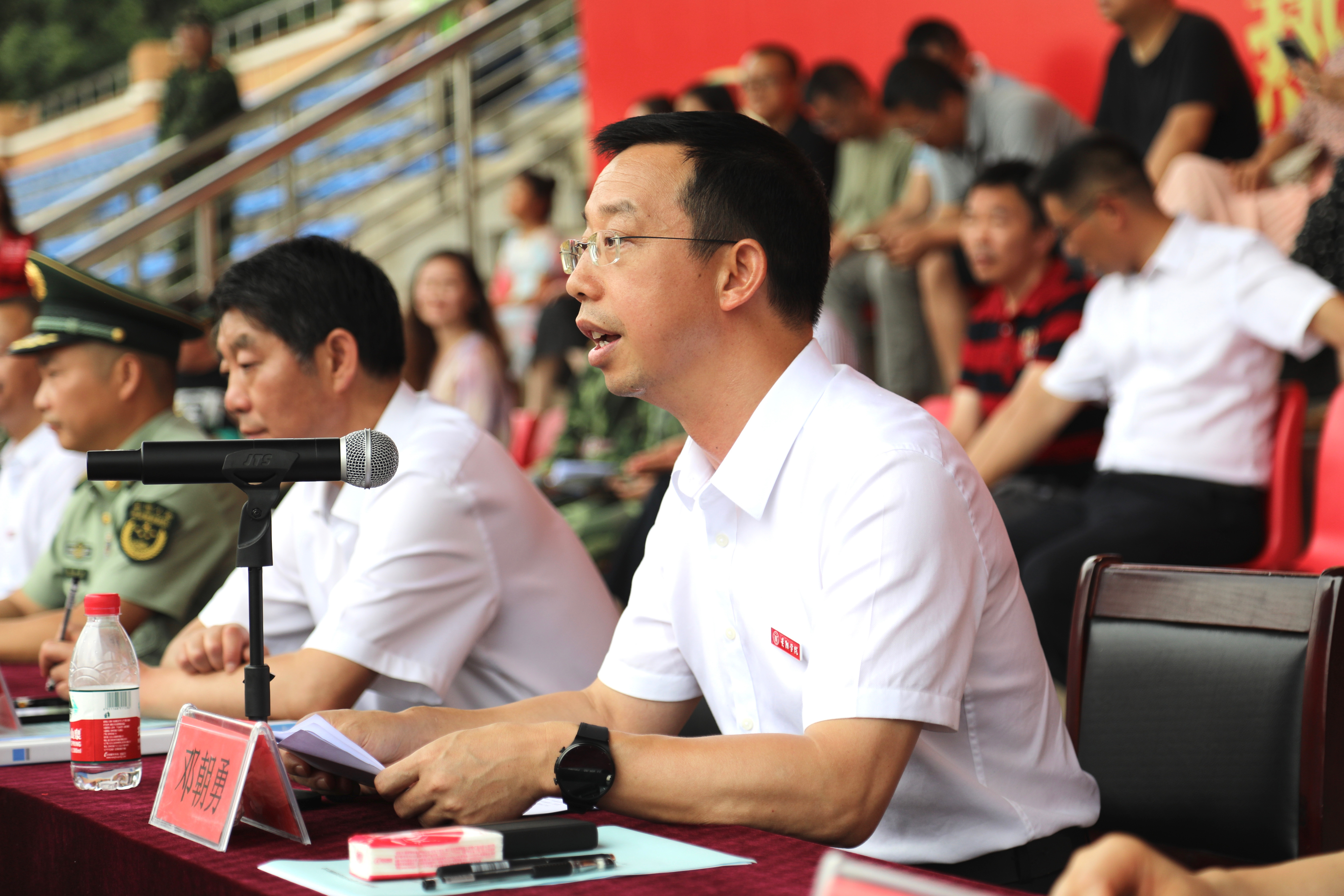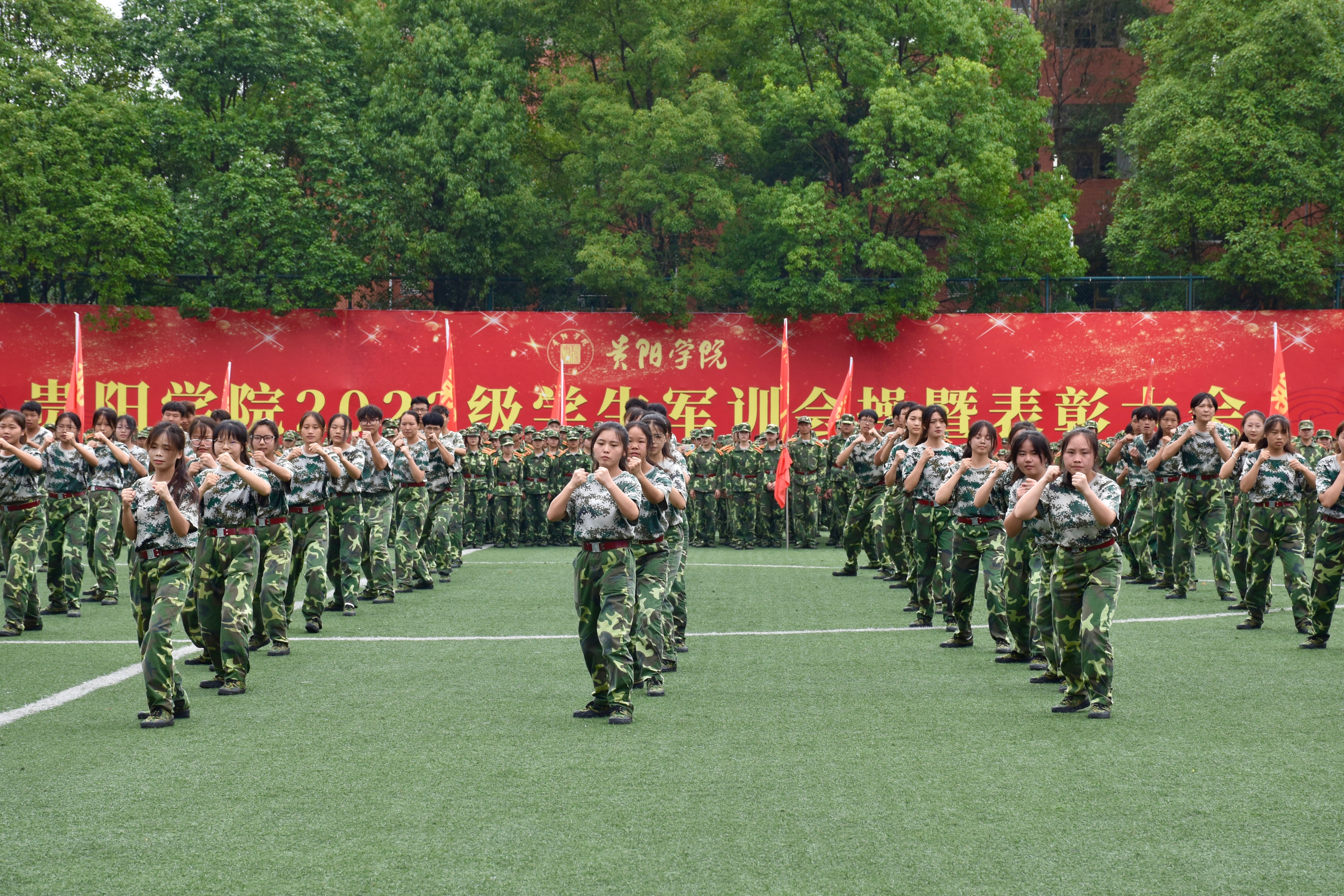 邓朝勇作军训总结讲话。他代表学校向承担军训任务的武警贵阳支队领导和全体教官表示衷心的感谢。他表示,军训是一堂国防教育课,也是“时代新人铸魂工程”的重要思政课,学校把军训教育与爱国主义教育相结合,激励大学生努力学习,立志成才。他希望,同学们始终牢记习近平总书记的嘱托,感恩奋进,听党话跟党走。以军训为起点,努力做到:一要坚定理想信念,树立共产主义远大理想,以求真务实作风,努力成为德智体美劳全面发展的社会主义事业建设者和接班人;二要珍惜学习时光,练好本领,让勤学上进成为逐梦远航的动力,让增长本领成为青春搏击的能量;三要坚持知行合一,报效祖国,用行动展示青春正能量、引领文明新风尚,努力成为有理想、有学问、有才干的优秀大学生!他寄语青年学子要把求知之力、修德之行、强能之志,融入报国之为,向前、向前、再向前,在实现中华民族伟大复兴的中国梦的生动实践中努力放飞青春梦想。
