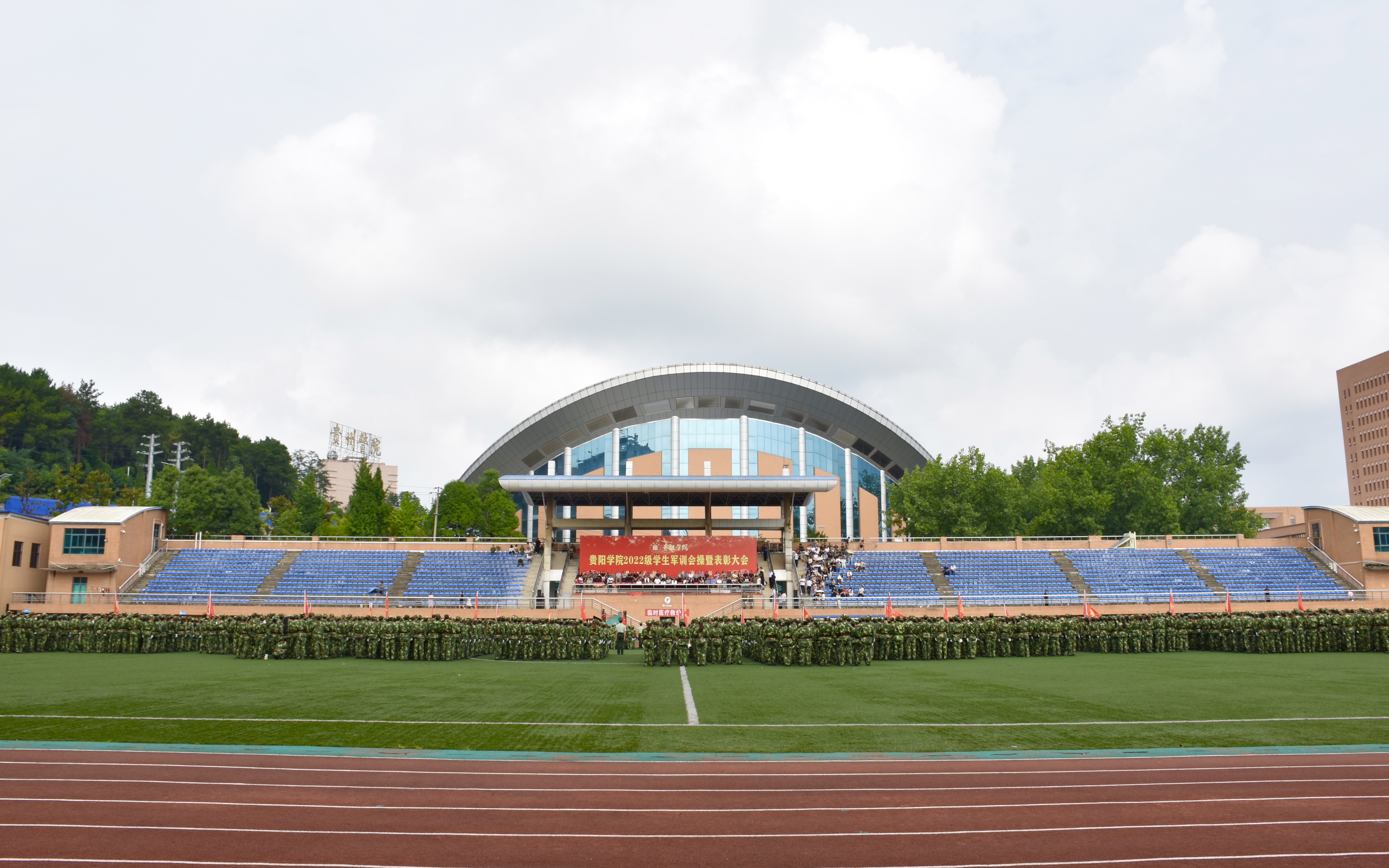2023年7月28日上午,beat365英国官网网站2022级学生军训总结表彰大会在学校田径场举行。校党委书记吕保平,党委副书记、校长邓朝勇,校领导焦艳、赵福菓、汪建初、王蜀黔,武警贵阳支队上校副支队长祖申亚出席表彰大会,全校副处级以上干部、辅导员、新生班主任、军训教官、2022级全体本科学生参加总结表彰大会,大会由党委副书记赵福菓主持。