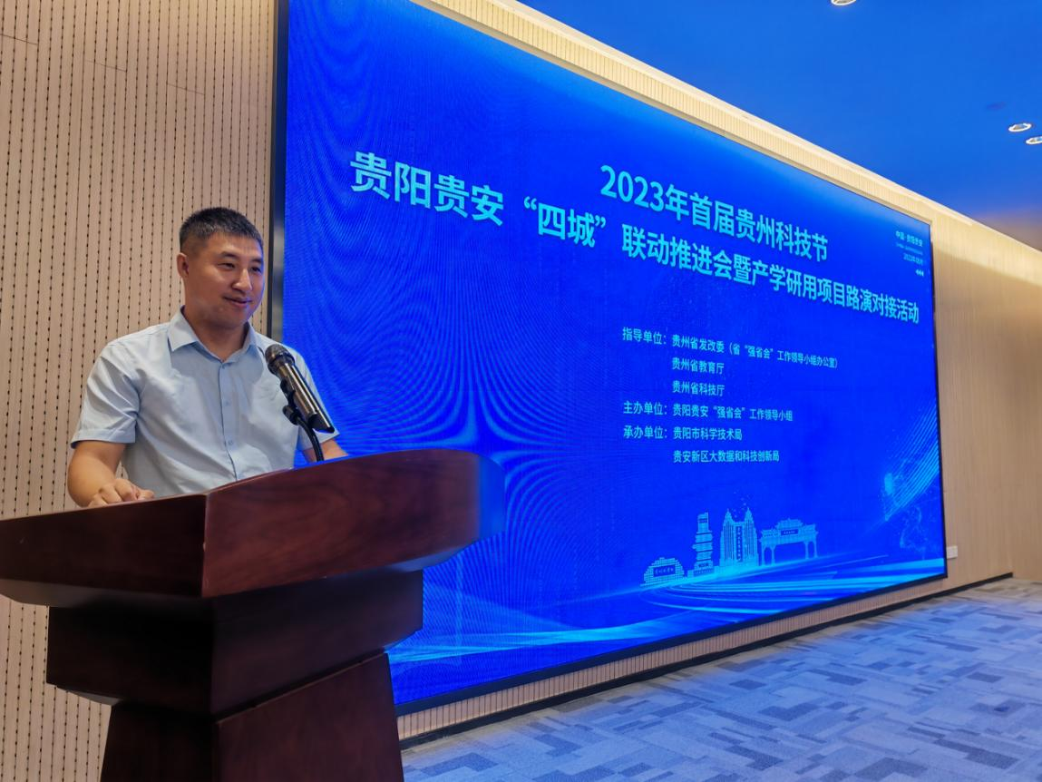科技节期间,为推进贵州科学城、贵阳大数据科创城、花溪大学城、清镇职教城(以下简称“四城”)联动发展,加速产业链、人才链、教育链、创新链深度融合,为“强省会”赋能添力,贵阳贵安“强省会”工作领导小组、贵阳市科学技术局、贵安新区大数据和科技创新局在贵阳大数据科创城召开了2023年首届贵州科技节•贵阳贵安“四城”联动产学研用路演对接会。贵阳贵安各相关部门、高校及科研院所有关专家、企业代表等齐聚一堂,促交流、话合作,加快推动“四城”联动发展。