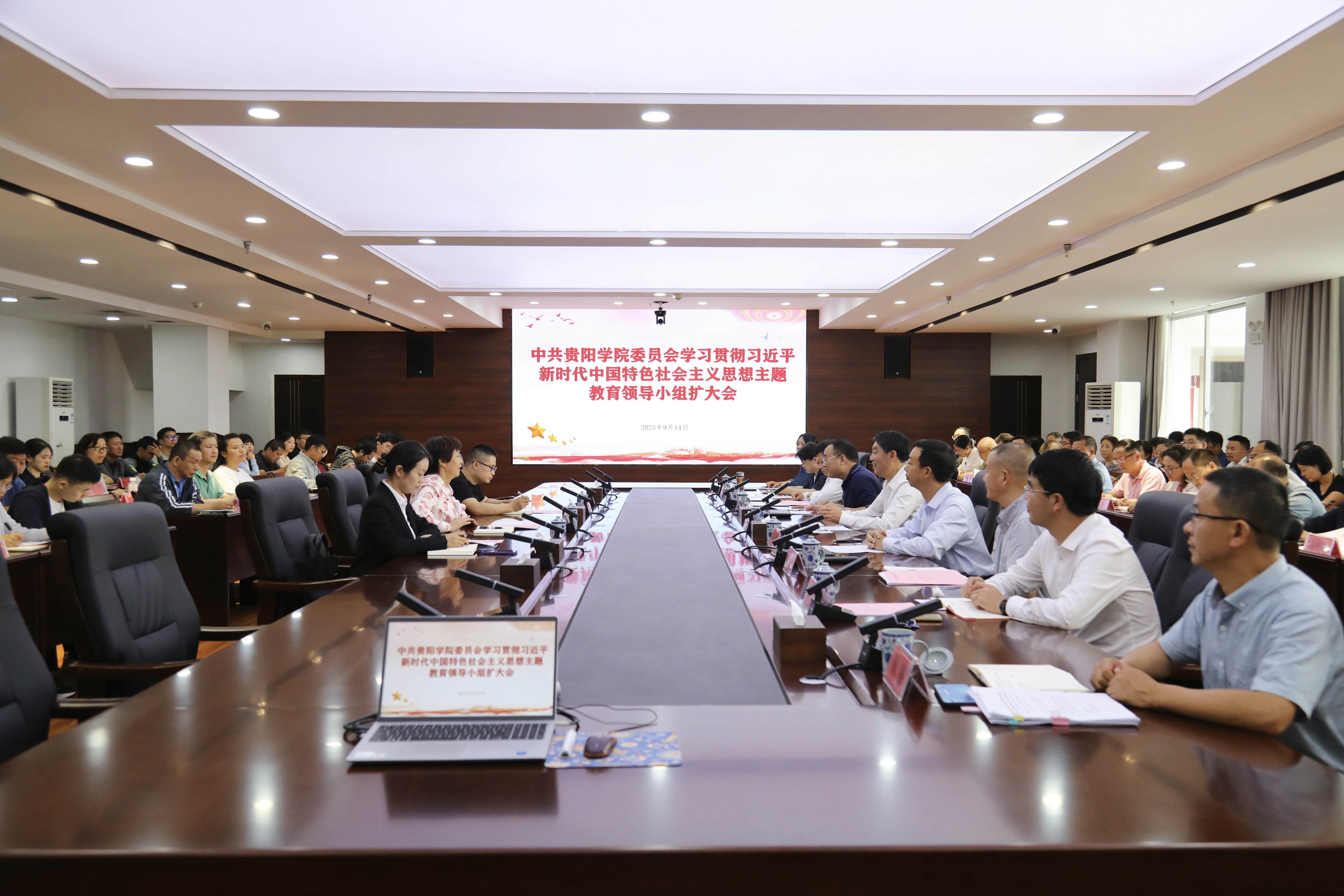 学校副处级以上党员干部、党支部书记、主题教育领导小组办公室全体成员、普通党员代表、离退休党员代表、学生党员代表、共青团员代表参加会议。