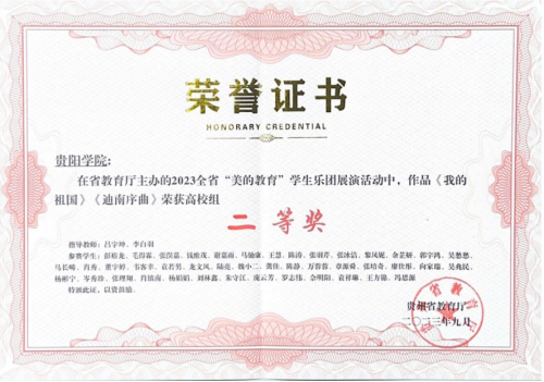 9月12—14日,2023贵州省“美的教育”学生乐团现场展演活动在遵义大剧院举行,学校音乐学院高度重视,副院长曾果果、党委副书记裘宁领队,吕宇坤、李白羽两位教师指导的音乐学院学生乐团,代表学校参加本次展演活动。校团委积极配合,兼职副书记张玺龙随团协助学生管理工作。尽管学校乐团体量偏小、设备配置欠缺,全体团员克服困难、发挥声部优势扬长避短,一举夺得全省高校组二等奖的好成绩!这是乐团继入围“中国-东盟教育交流周”青少年艺术暨教育成果展之后又一重要成果。