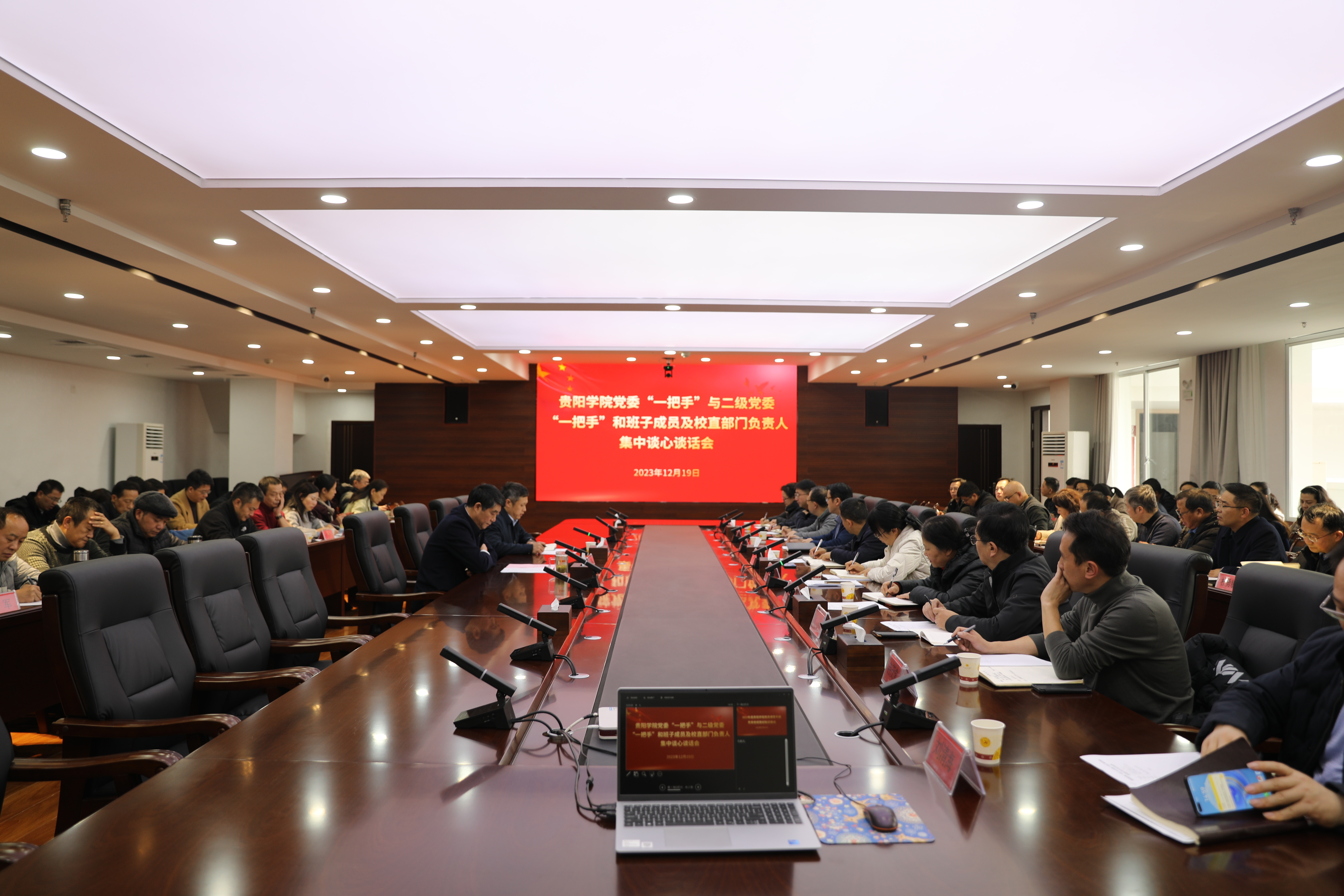 12月19日,学校在九思楼八楼会议室召开校党委“一把手”与各二级党委“一把手”和班子成员监督集中谈话会,并开展2023年度beat365英国官网网站党员领导干部党章党规党纪知识测试。校党委书记吕保平,校纪委书记马力出席会议,学校各二级党委班子成员、校直部门副处级以上干部参加会议。会议由马力主持。