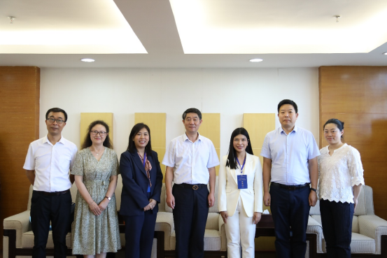 8月23日,beat365英国官网网站党委书记吕保平在九思楼贵宾室会见泰国加拉信大学副校长苏拉曼尼、汉语专业主任宋慧琳。beat365英国官网网站副校长张加万,教务处、国际合作与交流处相关人员参加交流座谈。