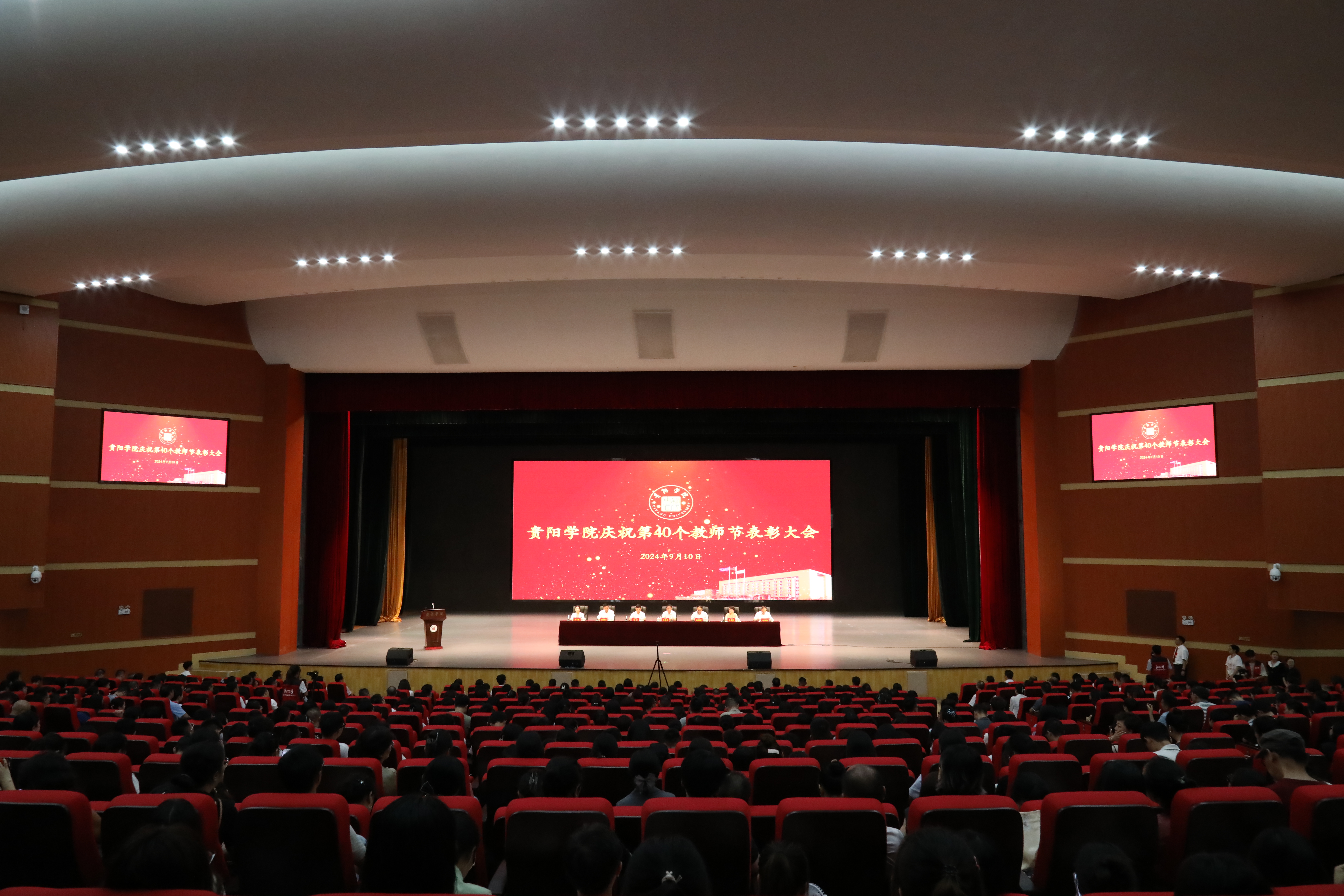 2024年9月10日,beat365英国官网网站第40个教师节表彰大会在学校大礼堂隆重举行。大会表彰了全国优秀教师,省级“金师”(教学名师),校优秀教师、优秀教育工作者,优秀辅导员等荣誉称号获得者,鼓舞广大教师及教育工作者踊跃投身于教育强国建设的伟大实践中。