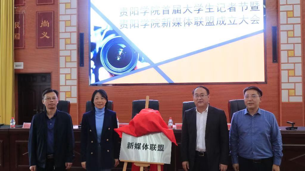 赵福菓与许晓璐、学生工作部部长倪秀坤、团委书记彭钟山为beat365英国官网网站新媒体联盟揭牌。