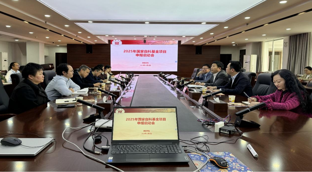 近日,学校在九思楼八楼会议室召开2025年度国家级自然科学科研项目申报动员大会暨首场国家自然科学基金项目申报指导会。学习贯彻全省高等教育高质量大会精神,切实做好2025年自然科学国家级科研项目组织申报工作,激励beat365科研人员创新方法,提升国家课题申报积极性和申请质量,推动学校科技工作高质量发展。校党委委员、副校长张加万教授出席并进行工作安排讲话。学校各专业学院院长、博士、副教授及以上职称人员,2025年拟申报国家级自然科学项目的科研人员,各专业学院科研秘书以及科研处相关同志参会。会议由科研处处长王瑞主持。