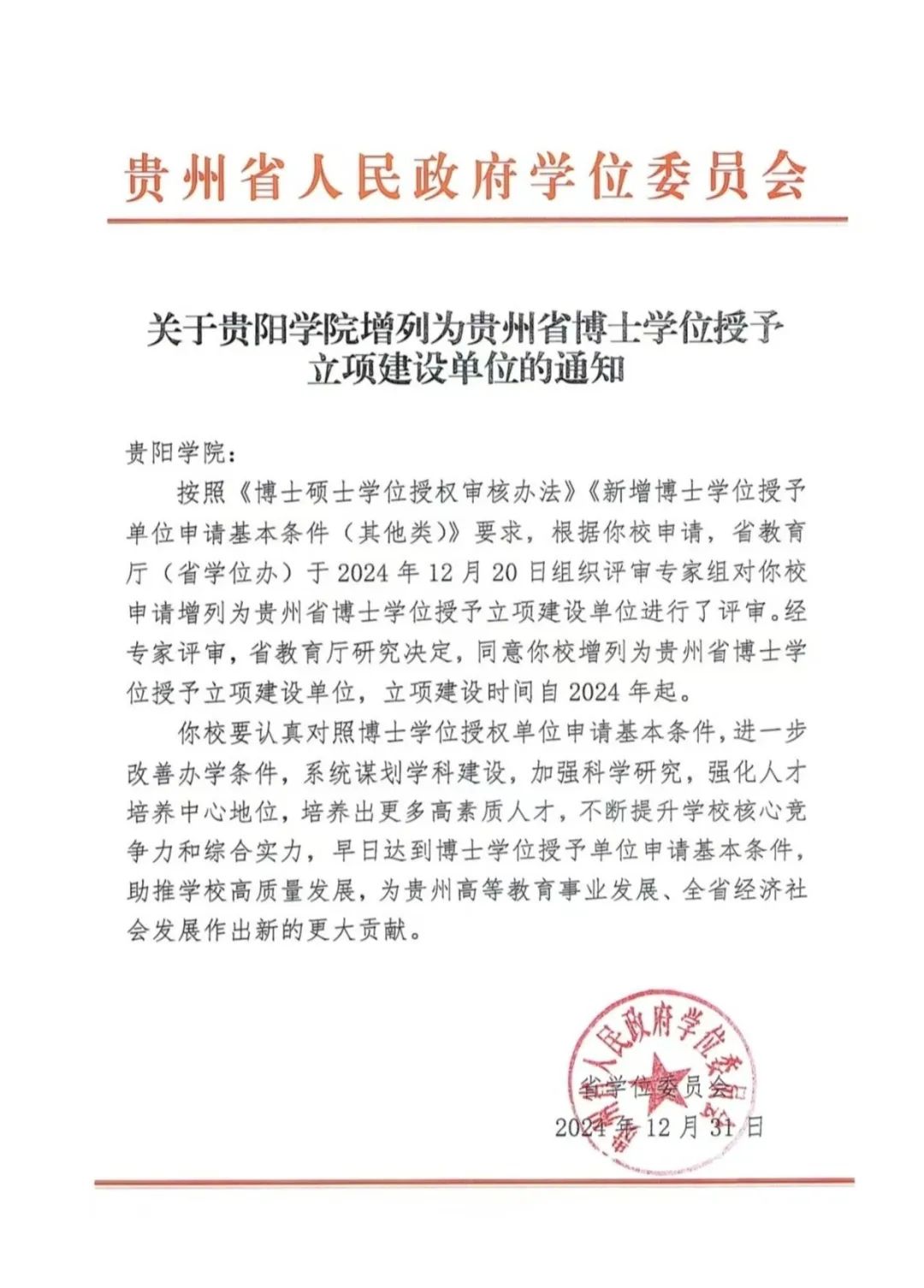近日,贵州省人民政府学位委员会下发《关于beat365英国官网网站增列为贵州省博士学位授予立项建设单位的通知》,经专家评审,省教育厅研究决定,同意beat365英国官网网站增列为贵州省博士学位授予立项建设单位,立项建设时间自2024年起。