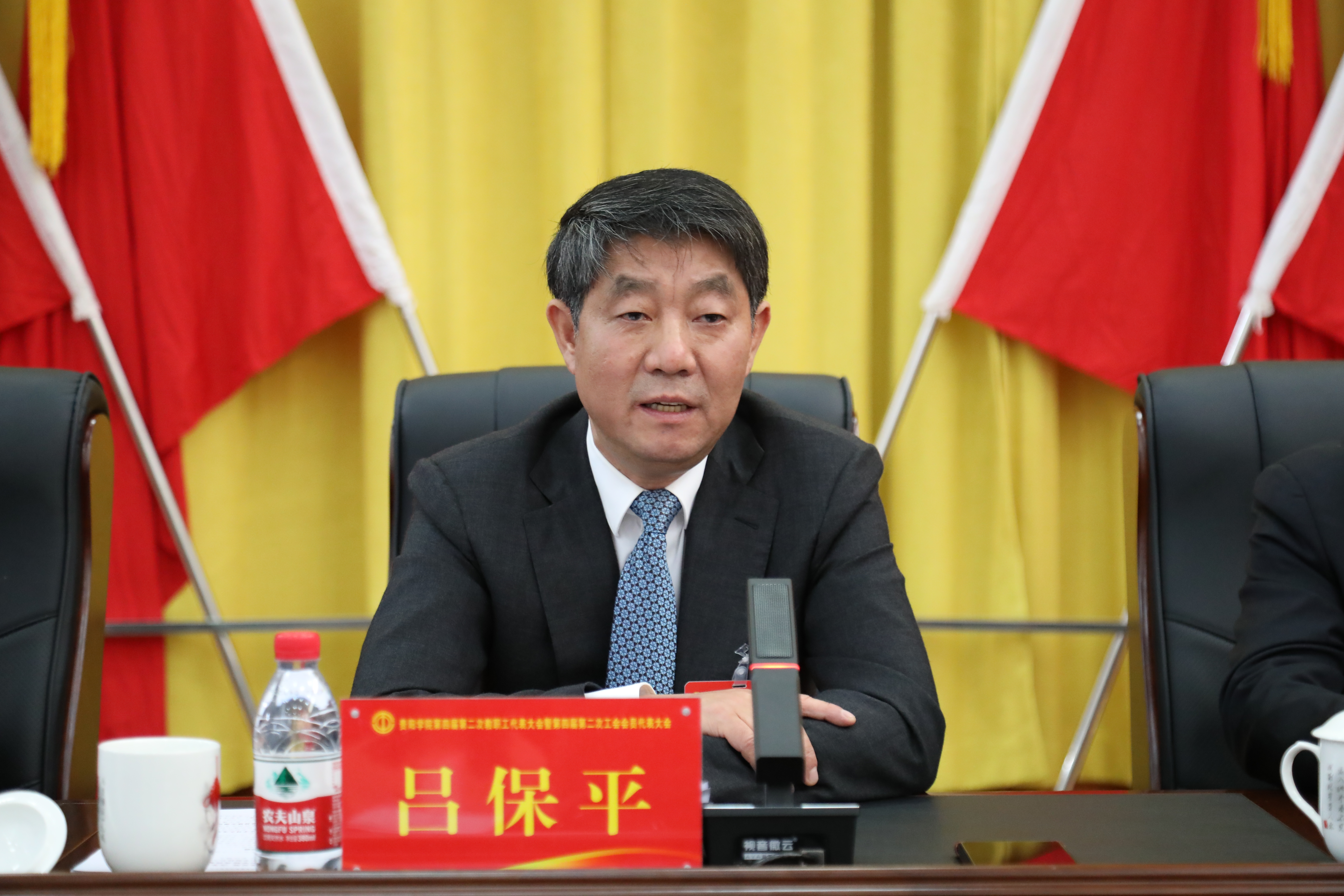 吕保平强调,贯彻落实好本次教代会精神,完成好今年的重点工作任务,一要加强教职工思想政治引领,筑牢学校发展思想根基。强化理论武装、弘扬正能量、加强意识形态工作;二要发挥学校工会组织的桥梁纽带作用,凝聚教职工智慧力量。完善工会工作机制、维护教职工合法权益、促进学校和谐发展;三要丰富民主管理形式,提升学校治理能力和水平。不断丰富和完善民主管理形式与制度,充分发挥教代会在学校治理中的重要作用,推动学校治理体系和治理能力现代化;四要为教职工办好事、办实事、解难事,增强教职工的幸福感和获得感。始终坚持以人为本,把解决教职工的实际问题作为工作的出发点和落脚点,让广大教职工共享学校改革发展的成果。