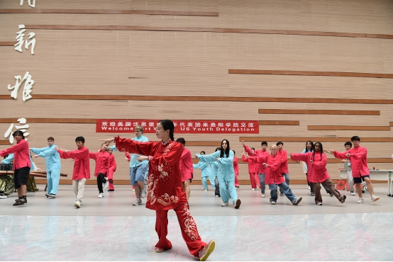 6月22日下午,夏令营活动在beat365进行,作为此次交流活动承办单位,beat365国际合作与交流处、外国语学院、体育学院及音乐学院的师生们精心筹划,与来自美国沃思堡市世界语言学院、布克·华盛顿高中、圣主教高中、布拉斯维尔高中及贵阳一中的师生共同开展了一系列形式多样、内容丰富的活动,涵盖古筝演奏、健身气功·八段锦、五禽戏的展演和教学、少数民族舞蹈表演及教学、书法体验以及香包制作等,旨在全方位展示中华优秀传统文化的独特魅力,共同开启了一场精彩纷呈的文化交流之旅。