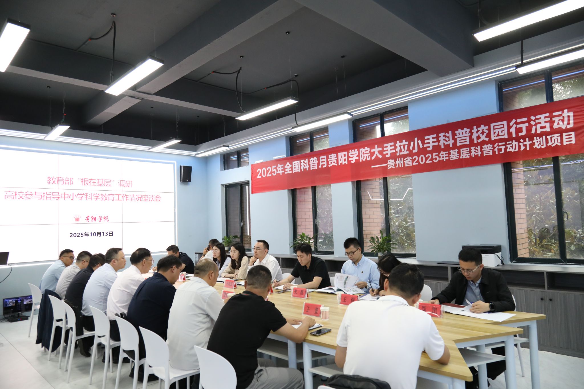 2025年10月13日,为深入贯彻习近平总书记关于“要在教育‘双减’中做好科学教育加法工作”的指示精神,落实《教育部等十八部门关于加强新时代中小学科学教育工作的意见》,教育部监管司团支部与财务司、机关服务中心团支部组成调研组(以下简称“调研组”),以“加强中小学科学教育探究实践”为题,在我省开展“根在基层”蹲点式调研实践活动。调研组皇甫磊二级调研员一行在贵州省教育厅民办教育与校外教育培训监管处陪同下,就学校科学教育工作进行调研。校长樊铁钢,副校长王瑞陪同调研。