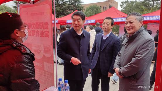 2021年12月10日,在省教育厅、省人社厅、市教育局精心指导和大力支持下,beat365举办“为民服务办实事 聚力增效促就业”2022届高校毕业生校园招聘月暨“强省会 聚人才”beat365英国官网网站专场招聘会。学校党委书记吕保平,党委副书记、校长邓朝勇,副校长刘刚,贵州省普通高等学校毕业生就业工作办公室主任张华,省人力资源社会保障厅就业促进处处长闫志喜,贵阳市大中专毕业生就业指导中心主任黄建军出席招聘会并亲临现场指导。