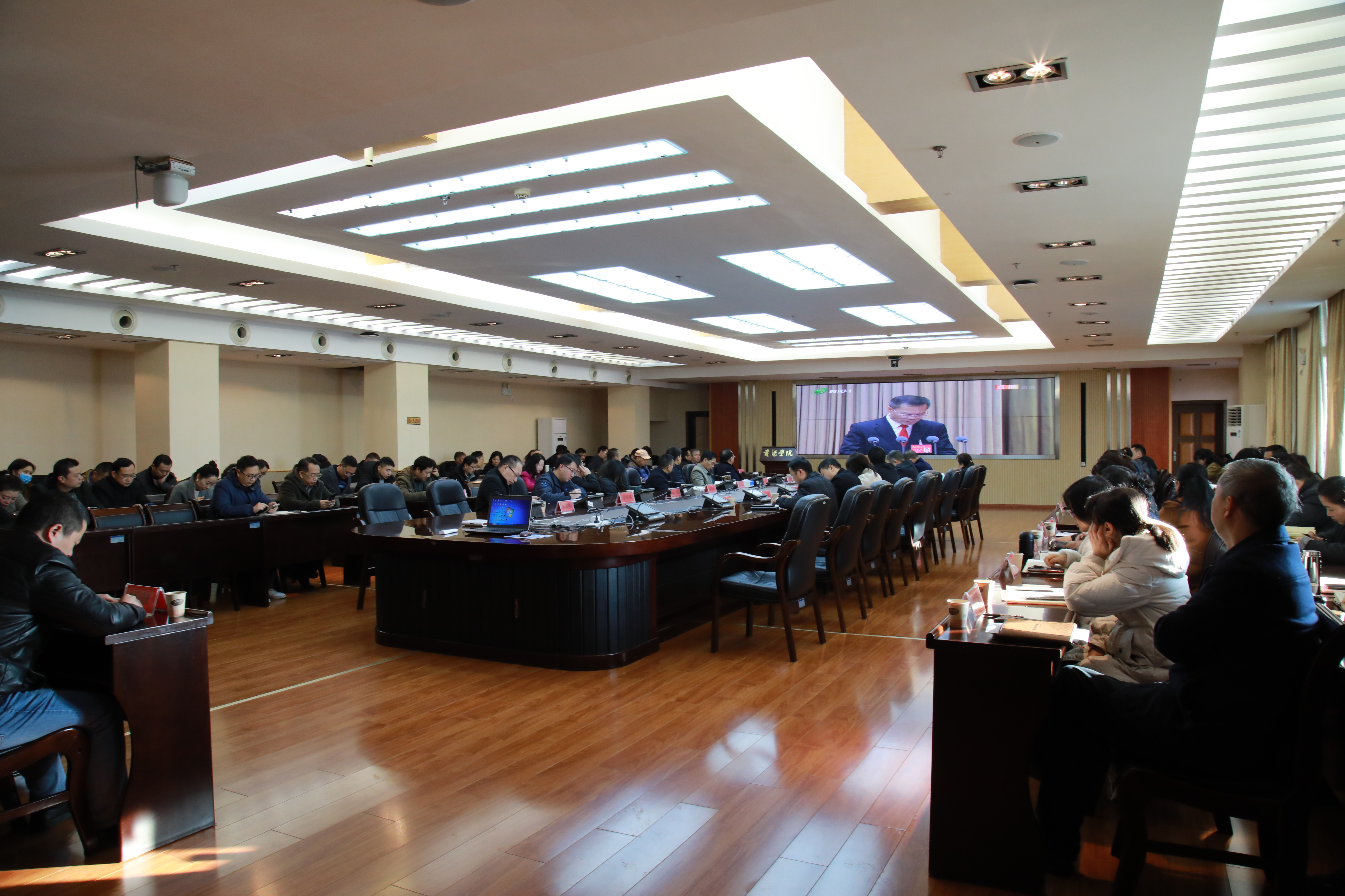 beat365组织副处级以上干部在九思楼八楼会议室集中收看了开幕式直播。