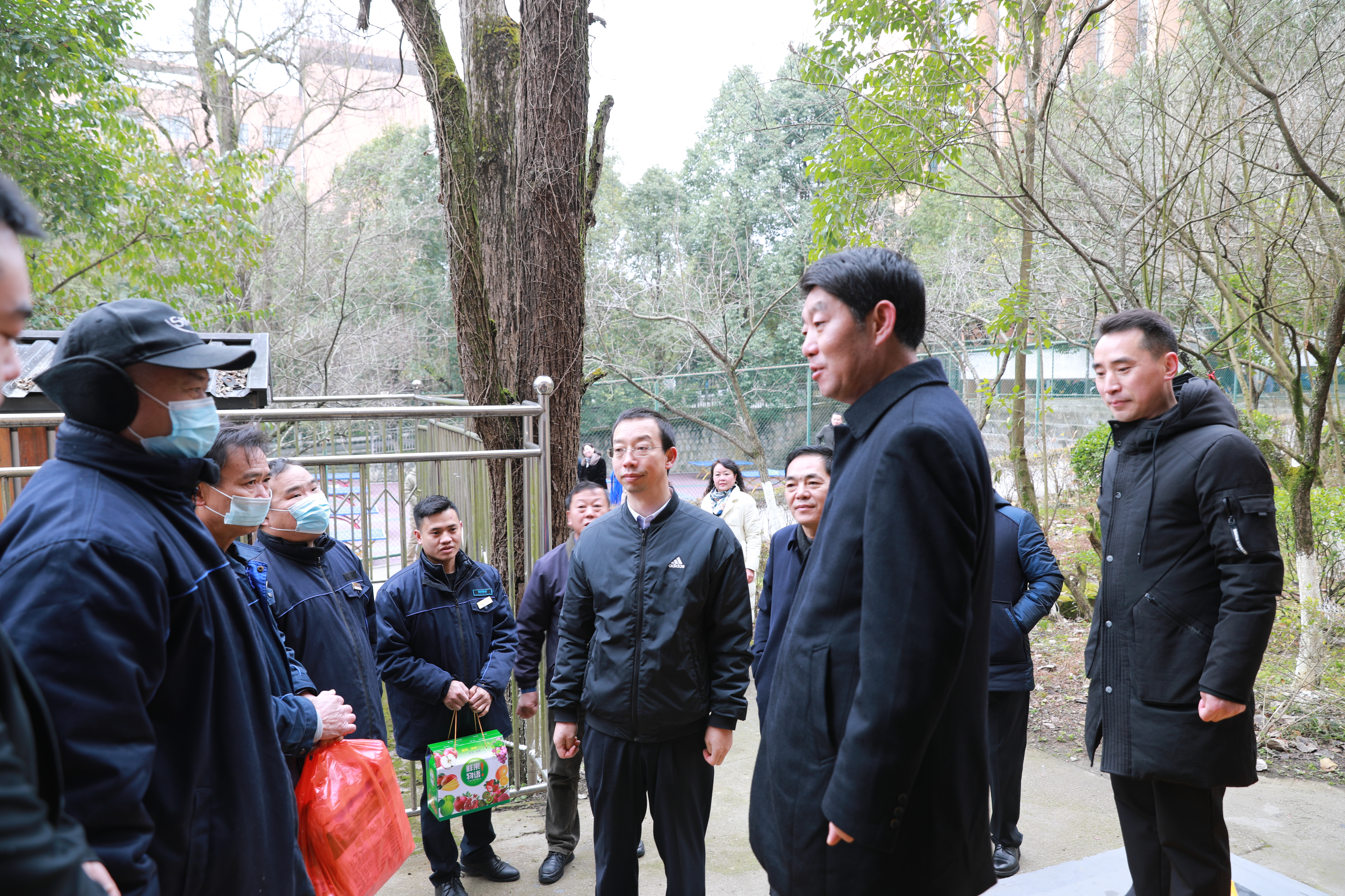 “天气冷,注意保暖,你们辛苦了。”一句句简单的叮咛,却饱含着深深的谢意与敬意。每到一处,校领导都与坚守在管理服务工作一线的教职工亲切交谈,详细询问校园各方面的运行保障情况,了解工作困难,向他们舍小家顾大家、坚守一线、履职尽责的敬业奉献精表示敬意,感谢他们为学校各项工作作出的贡献。