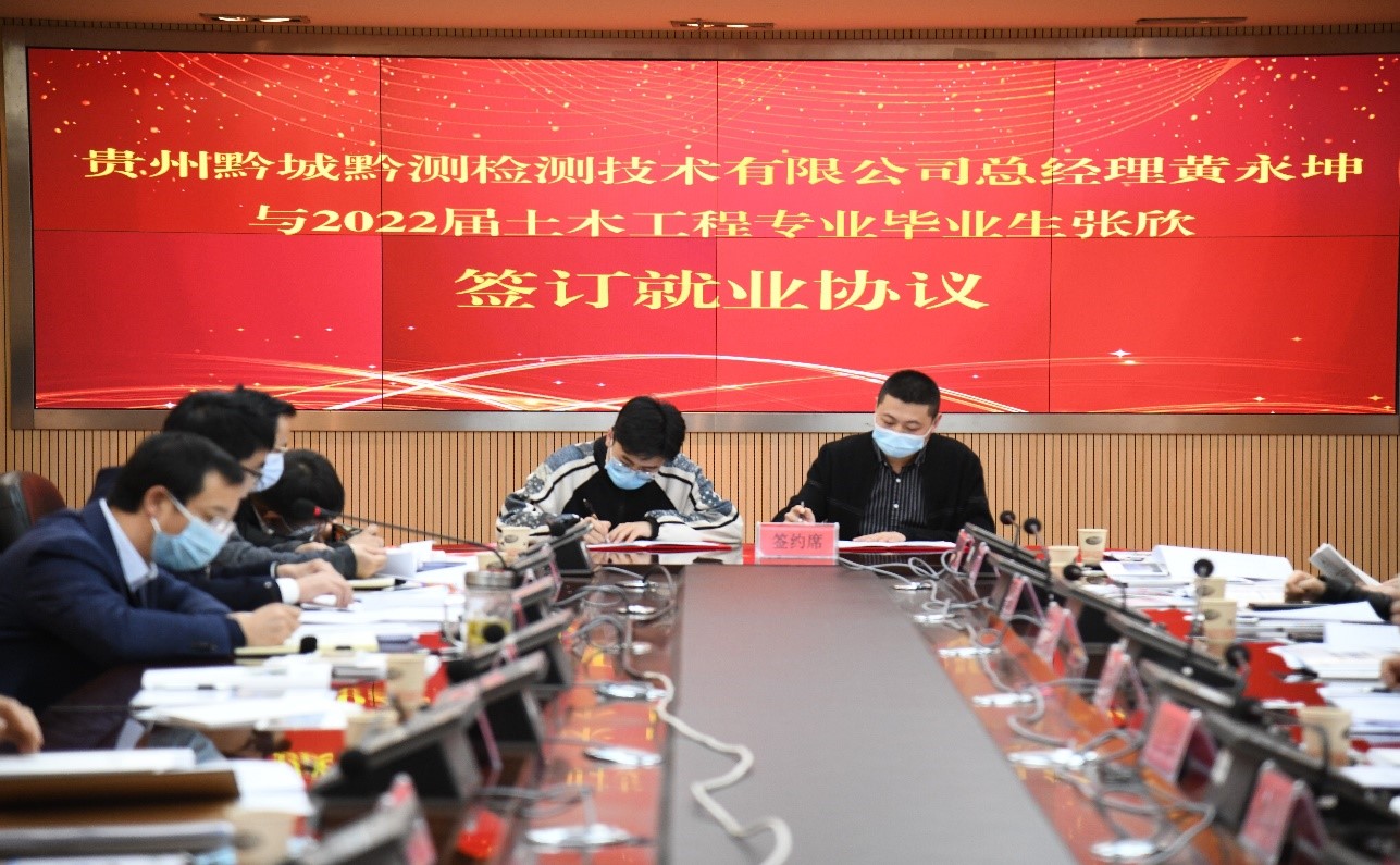 贵州黔城黔测技术有限公司与beat365英国官网网站2022届土木工程专业毕业生代表张欣签订就业协议