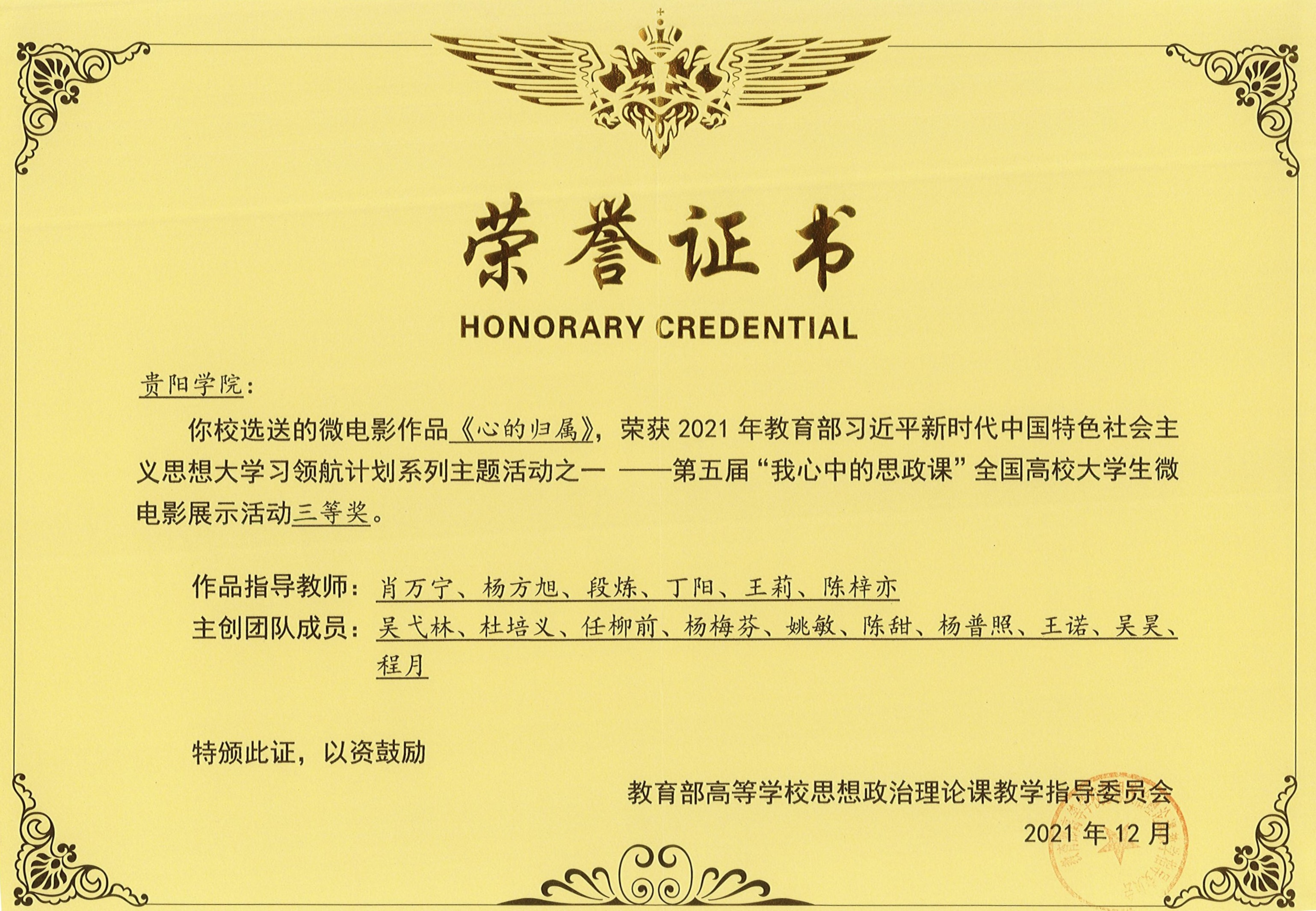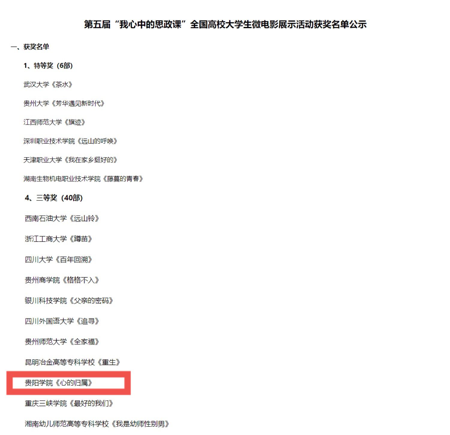 近日,第五届“我心中的思政课”全国高校大学生微电影展示活动获奖结果发布,beat365报送的微电影《心的归属》荣获三等奖。