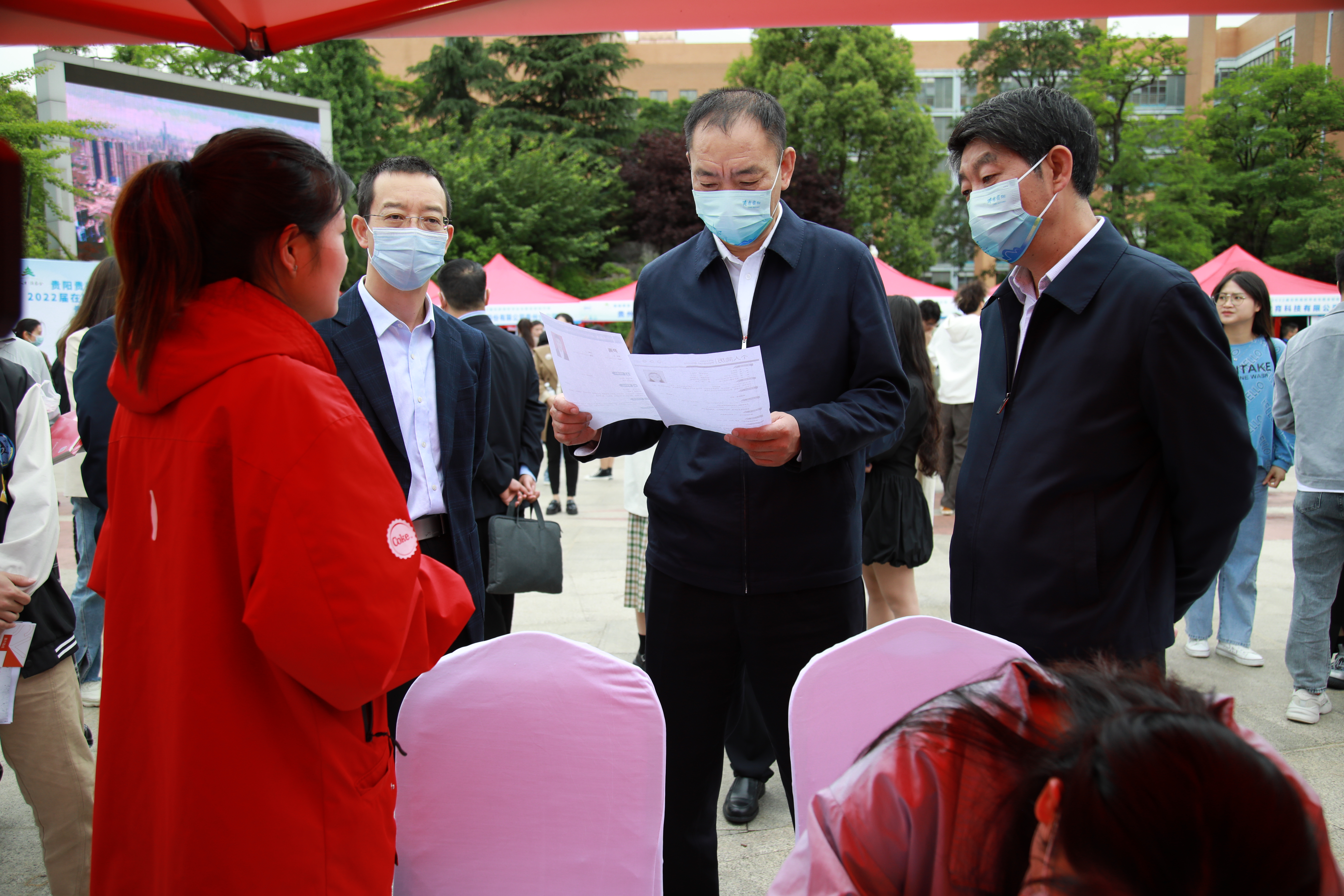 5月13日,由中共贵阳市委人才工作领导小组主办,市委政法委承办的“筑人才·强省会”2022年贵阳贵安“人才月”主题活动暨2022届在黔高校毕业生就业创业行动——beat365英国官网网站专场招聘会举行。贵阳市委常委、市委政法委书记彭容江赴现场指导,beat365英国官网网站党委书记吕保平,党委副书记、校长邓朝勇,市委政法委、beat365英国官网网站有关负责人参加。