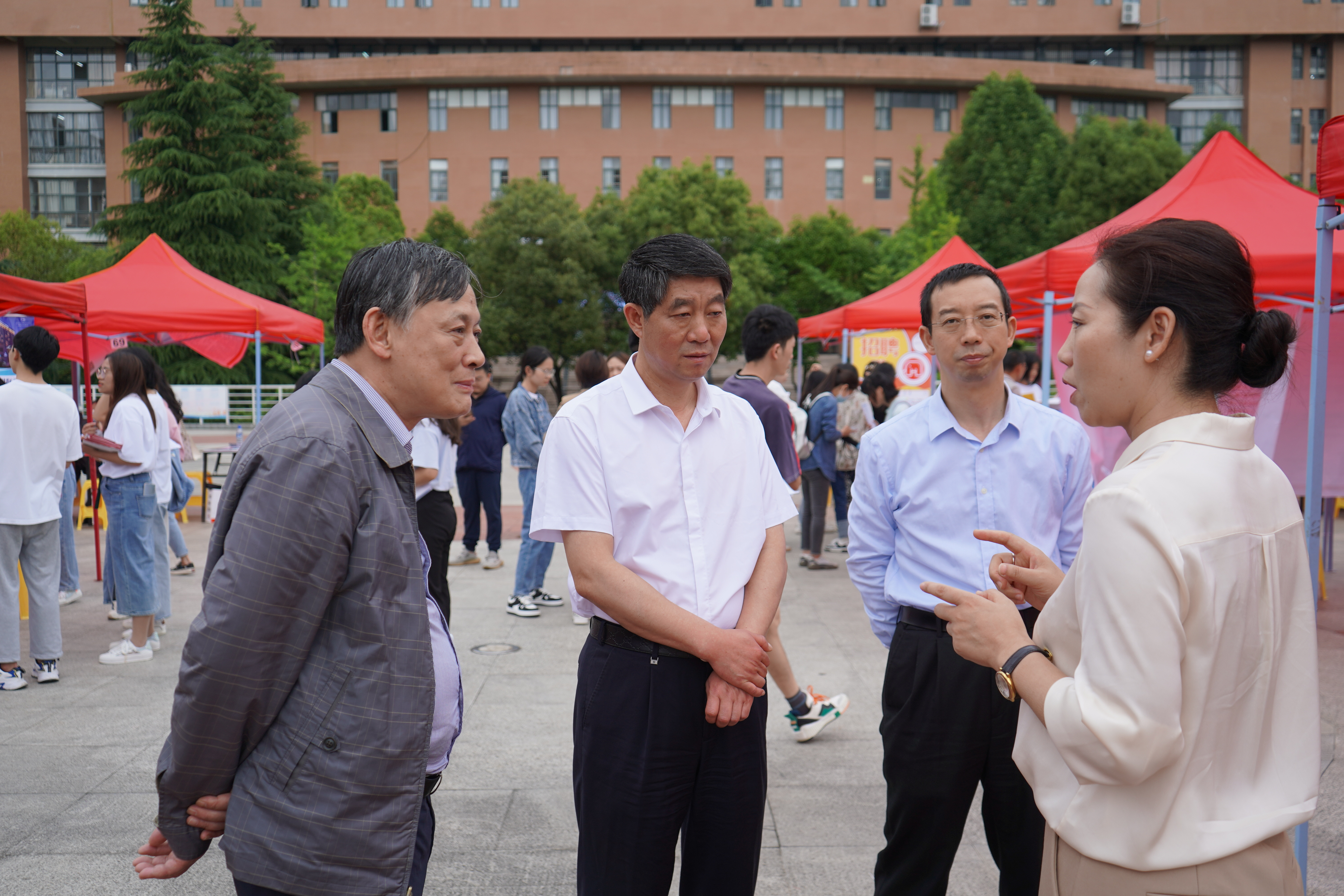 贵州省普通高等学校毕业生就业工作办公室主任张华、贵阳市大中专毕业生就业指导中心主任黄建军,beat365党委书记吕保平,党委副书记、校长邓朝勇,副校长刘刚到现场调研指导。在调研中每到一处,详细询问察看学生的实习和就业情况,了解用人单位基本情况和就业岗位的需求情况。