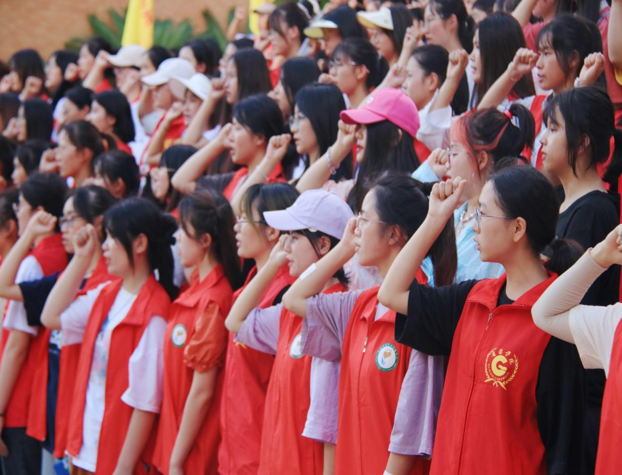 社会实践队志愿者代表李芊芊在仪式上发言并庄重承诺,在本次活动中,将严格服从带队老师的安排,全力以赴,力争圆满地完成预定的各项实践任务。志愿者代表彭云青带领全场志愿者进行出征宣誓。