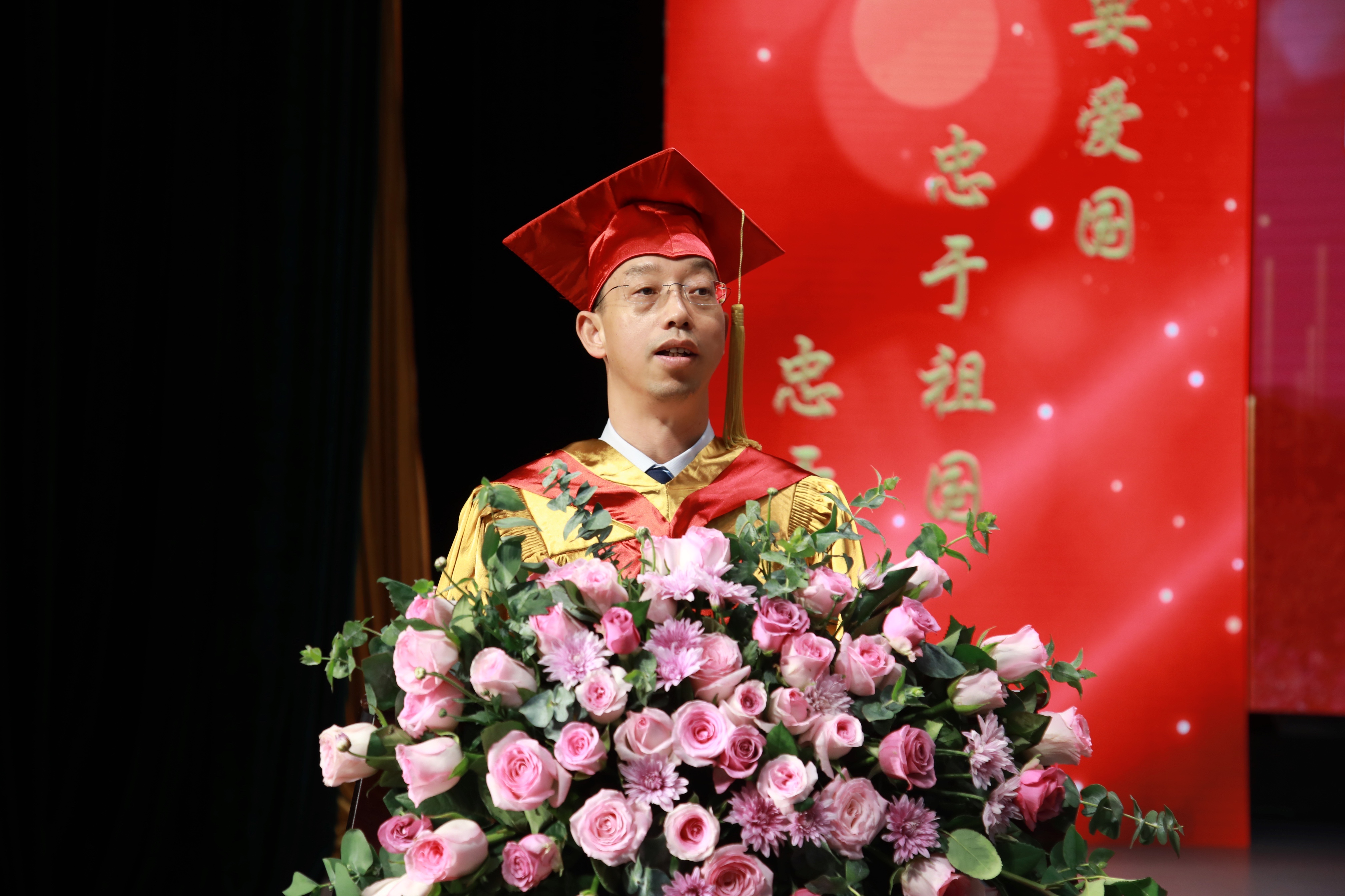 教育科学学院教授余文武代表研究生导师发言,他说:“今年的毕业季,与往年大不相同,因为多了29名身着硕士学袍的莘莘学子,最美校园由此平添几多喜庆祥和的学术氛围。我们可以自豪地说,学院派的学术史由此改写!在欢声笑语的毕业季,各奔东西的不舍与难说再会的惆怅,让大家既喜悦又忧郁。作为导师,最挂记的是远离母校而去的诸君。惟愿你们身怀开阔的胸襟,无私无畏,投身到中华民族伟大复兴事业之中,谱写一首又一首赤胆忠心、报效祖国之学者人生的最美心曲。惟愿诸君能冲破荆棘,奋力成长为参天大树!”