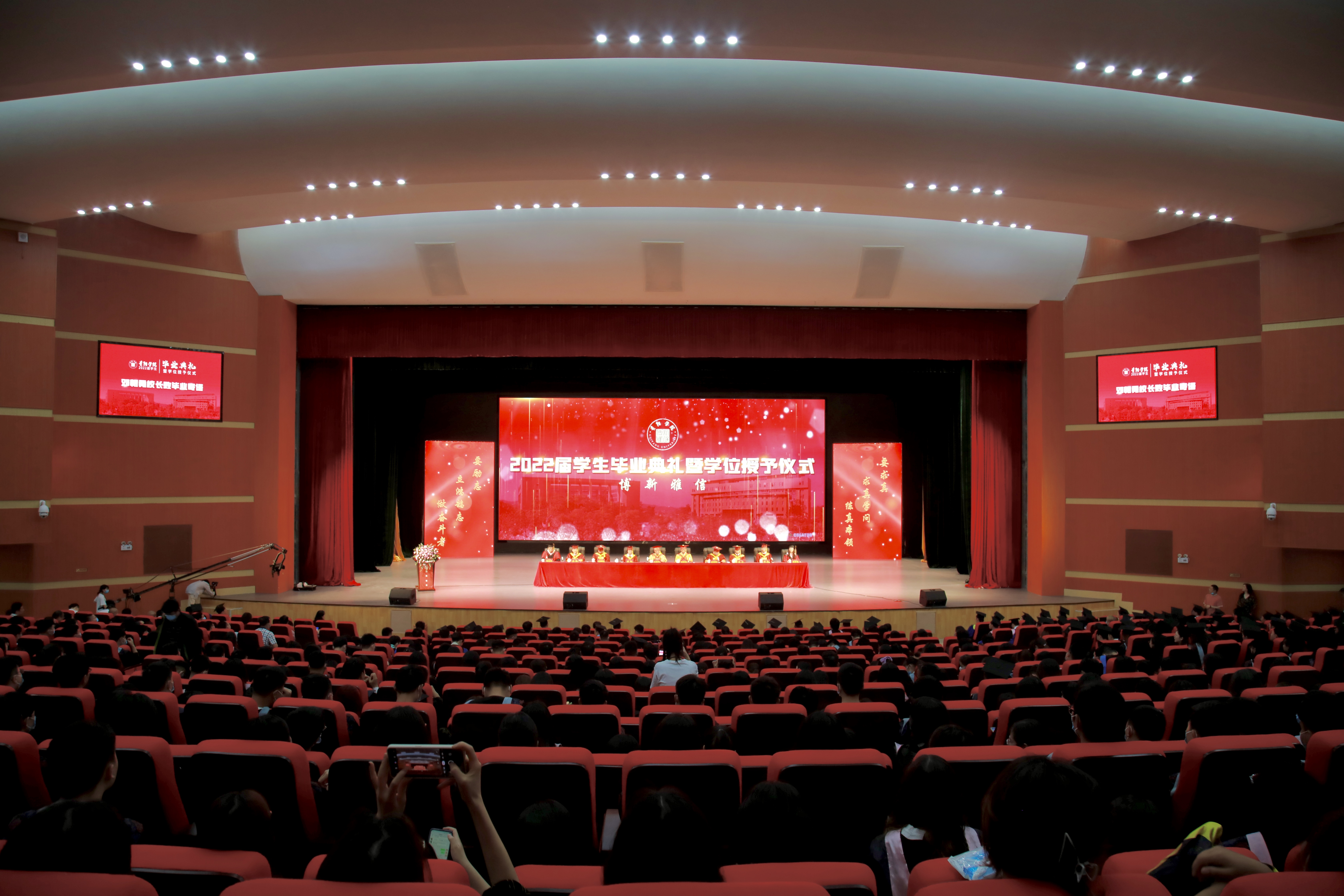 6月22日上午,beat365英国官网网站2022届学生毕业典礼暨学位授予仪式在大礼堂隆重举行。校党委书记吕保平,校党委副书记、校长邓朝勇,校党委副书记焦艳、赵福菓,副校长汪建初,纪委书记马力,副校长刘刚、李灿出席毕业典礼。专业学院代表马立志、优秀教师代表熊姗姗、学校学位评定委员会委员、专业学院领导班子、校直部门负责人、硕士生导师、辅导员、班主任及2022级毕业生参加毕业典礼。典礼由赵福菓主持。