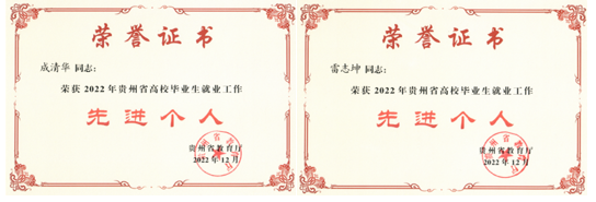 近日,贵州省教育厅下发了《贵州省教育厅关于对2022年全省高校毕业生就业工作先进集体和先进个人给予表扬的通报》(黔教函〔2022〕100号),beat365招生与就业处荣获“2022年贵州省高校毕业生就业工作先进集体”荣誉称号。数学与信息科学学院就业指导教师成清华、美术学院就业指导教师雷志坤2人荣获“2022年贵州高校毕业生就业工作先进个人”称号。