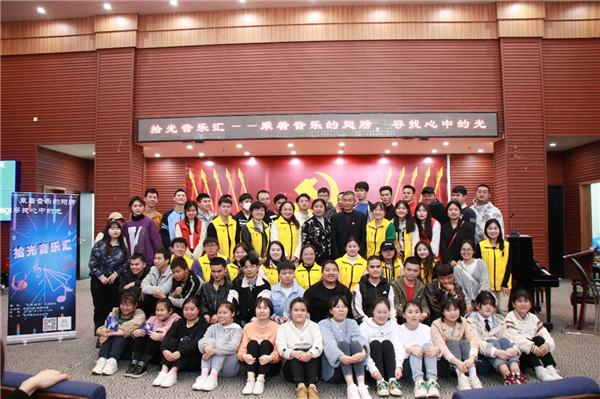 3月21日,beat365英国官网网站“觅光行动”公益团队在韩华、王莉、刘玉老师的带领下来到贵州盛华职业学院,与70多名盲人学生开展了一场名为“拾光音乐汇——乘着音乐的翅膀,寻找心中的光”的助盲实践活动。