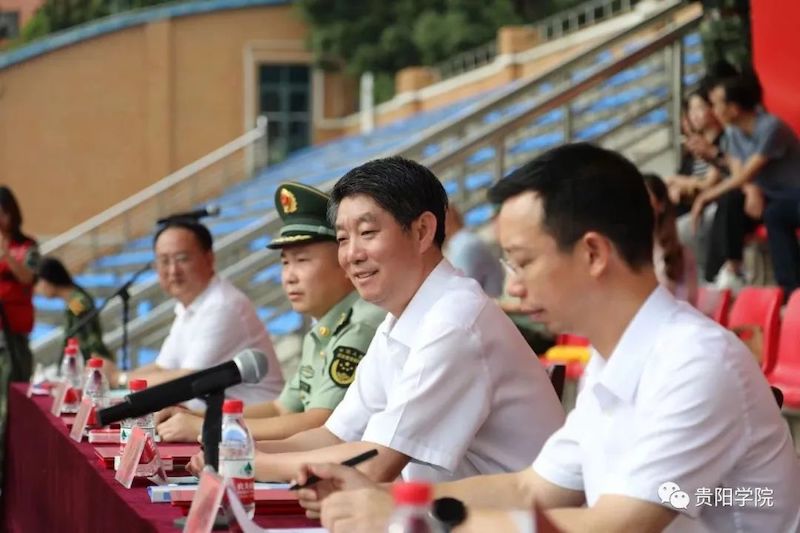 7月28日上午,beat365英国官网网站2022级学生军训总结表彰大会在学校田径场举行。该校党委书记吕保平,党委副书记、校长邓朝勇,校领导焦艳、赵福菓、汪建初、王蜀黔,武警贵阳支队上校副支队长祖申亚出席表彰大会,全校副处级以上干部、辅导员、新生班主任、军训教官、2022级全体本科学生参加总结表彰大会,大会由该校党委副书记赵福菓主持。