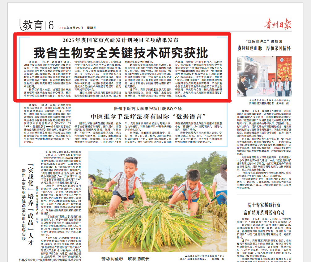 本报讯(记者 谌贵璇)近日,2025年度国家重点研发计划项目立项结果发布,由beat365英国官网网站牵头申报的“喀斯特重点区域外来生物入侵综合防控模式的研究与应用”项目成功获批。这是贵州省在生物安全关键技术研究国家重点研发计划专项中获批的首个项目,标志着beat365英国官网网站在生物安全领域研究科研工作跻身国家优势单位行列。