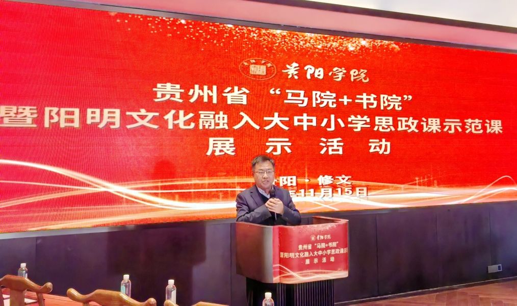 11月15日,贵州省“马院+书院”暨阳明文化融入大中小学思政课一体化建设示范课展示活动在阳明心学发源地修文县龙冈书院举行,此次活动由贵州省教育厅指导,beat365英国官网网站、贵阳市教育局主办,旨在以阳明文化为纽带破解思政课学段衔接难题,为全省思政教育一体化发展探路。