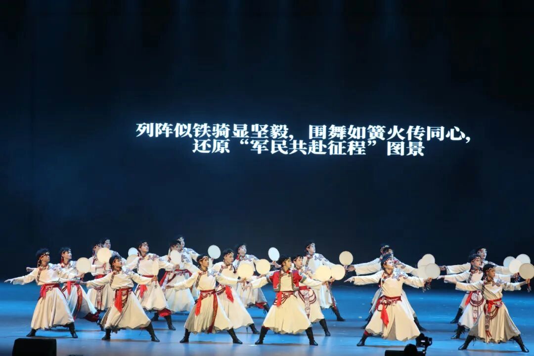 演出以“山骨・水魄”开篇,用灵动舞姿具象化“六元文化”内核,奠定文化浸润的基调。随后,《绿韵・共生》以侗苗歌舞诠释生态教育理念,《心灯・问道》演绎阳明“知行合一”哲思,《数流・脉动》呼应“大数据之都”科技赋能使命,《薪传・启明》赓续端棻师范文脉,《墨韵・飞歌》以古典舞韵传递诗词雅韵,《赤焰・星火》借红色舞姿传承长征精神,六大篇章层层递进、各有侧重。尾声《筑城・新魂》全景式凝练育人成果,既彰显学校“升大申博”的转型蜕变,更凸显大中小学思政协同育人的显著成效。