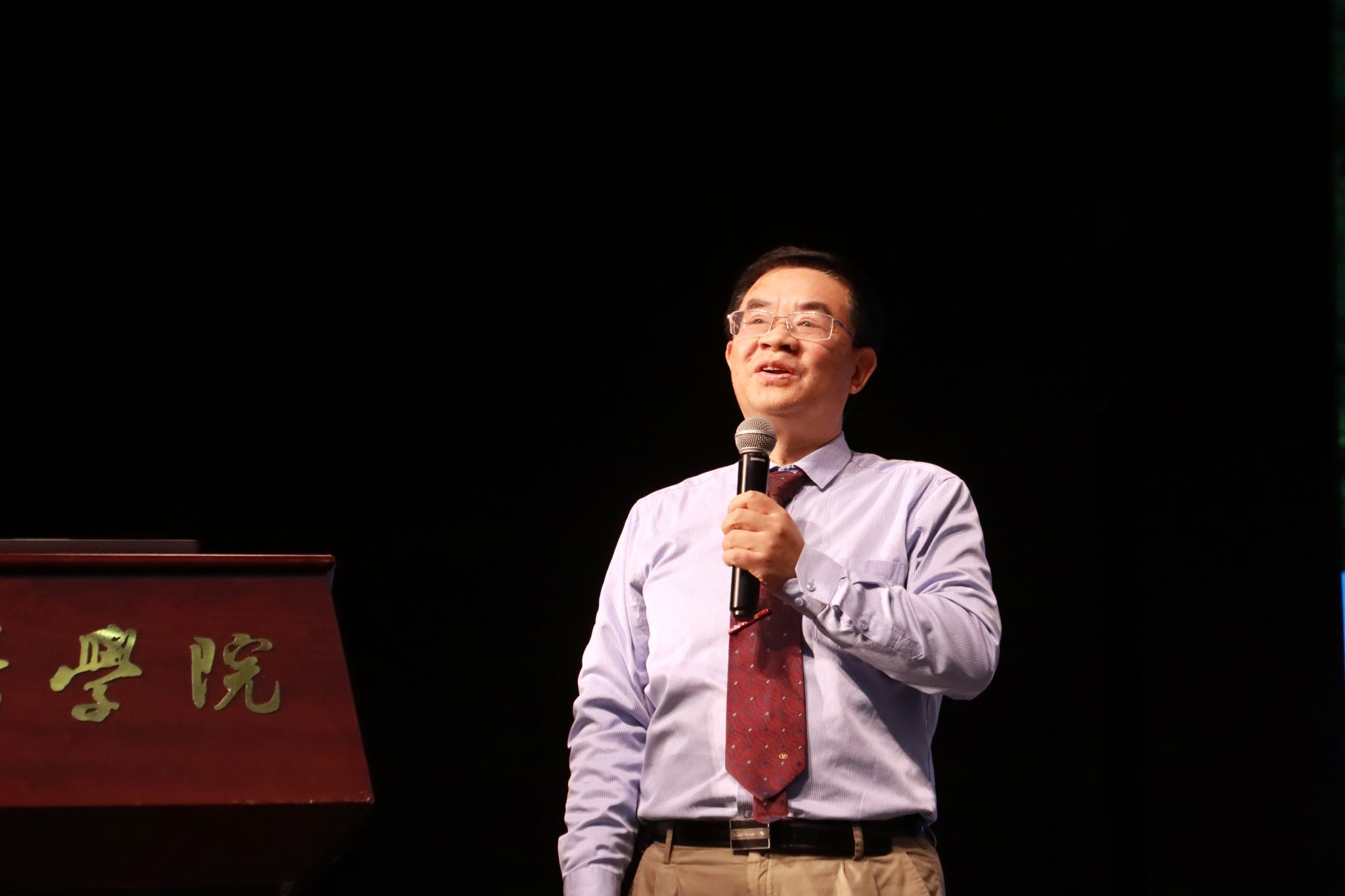 在宣讲报告环节。医学科学家伍国锋,作为医学博士、博士生导师,二级教授、主任医师,他在医学领域取得了卓越成就。他是中国卒中学会脑出血微创治疗分会副主任委员、贵州省急诊医疗质量控制中心主任等,主持多项国家级、省部级基金,获省部级科技进步奖5项。伍国锋结合自身经历,分享了在医学研究和临床实践中的坚守与创新,展现了追求真理、严谨治学的求实精神和淡泊名利、潜心研究的奉献精神,让师生们深受启发。