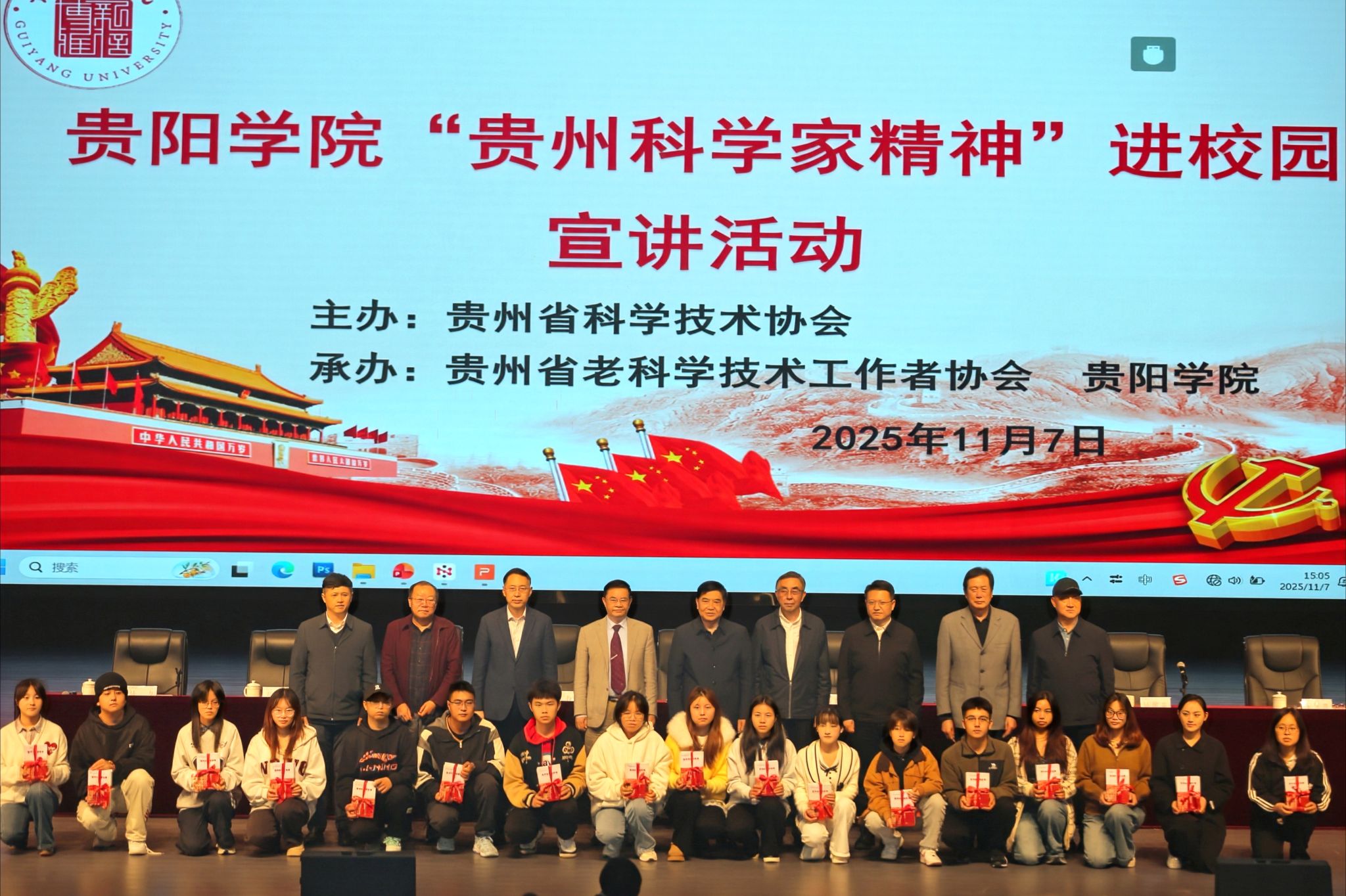 11月7日,“弘扬科学家精神,共筑科技强国梦”——“贵州科学家精神”进校园宣讲活动在beat365英国官网网站大礼堂举行。活动由贵州省科学技术协会主办,贵州省老科学技术工作者协会与beat365英国官网网站共同承办。贵州省政协原副主席、中国老科协副会长、贵州省老科协荣誉会长班程农,贵州省老科学技术工作者协会常务副会长兼秘书长杨献忠,副会长方荣基,beat365英国官网网站党委书记黄营,党委副书记、校长樊铁钢,党委副书记马力出席。贵州科学家代表、省老科协相关领导以及beat365英国官网网站师生代表约900人参加活动。马力和方荣基分别主持活动的两个环节。