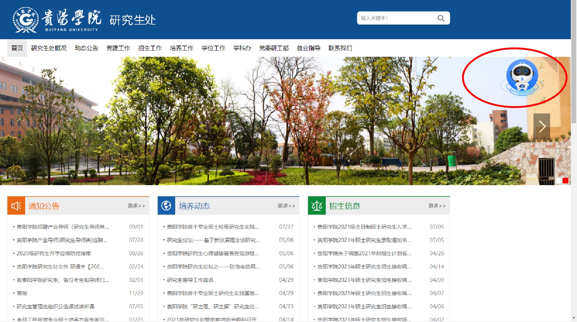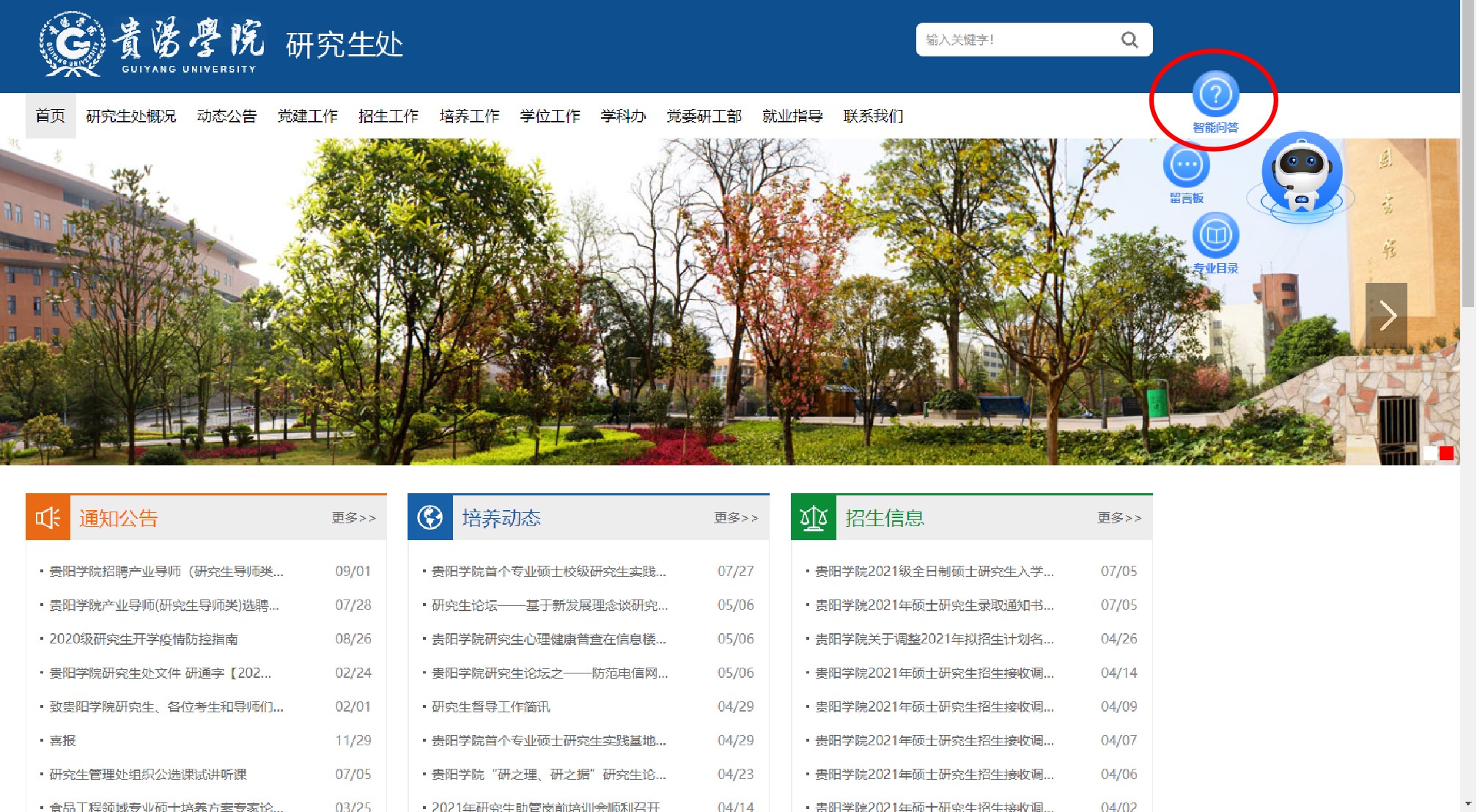点击访问beat365英国官网网站研究生处网站,如下图所示,点击招生问答功能。