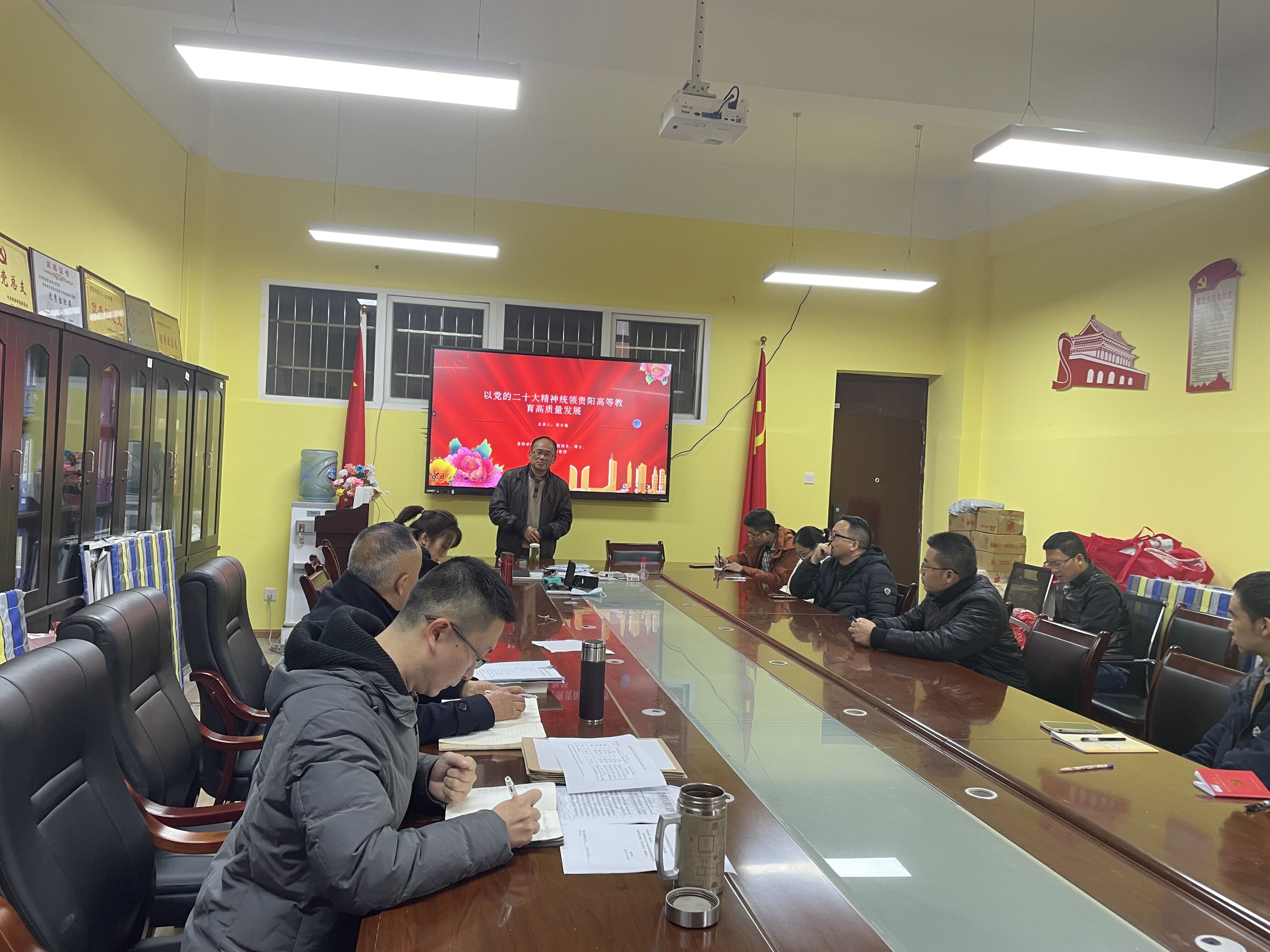 周术槐从党的二十大召开的时代背景、参会代表结构、会议主题、主体内容、主要创新点、引发的强烈反响及以党的二十大精神统领贵阳高等教育高质量发展七个方面对党的二十大精神进行了全面系统的解读。化材学院教师表示,听取周术槐的宣讲后,再一次加深了对党的二十大精神理解,对将来学校高质量发展充满信心。