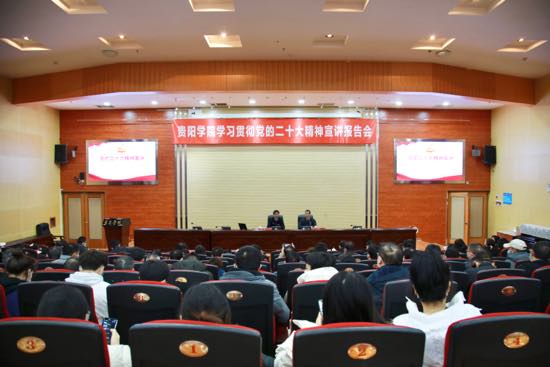 11月30日,市委宣讲团成员、beat365英国官网网站党委书记吕保平在图书馆报告厅为师生作学习贯彻党的二十大精神宣讲报告。宣讲报告会由校党委副书记、校长邓朝勇主持。