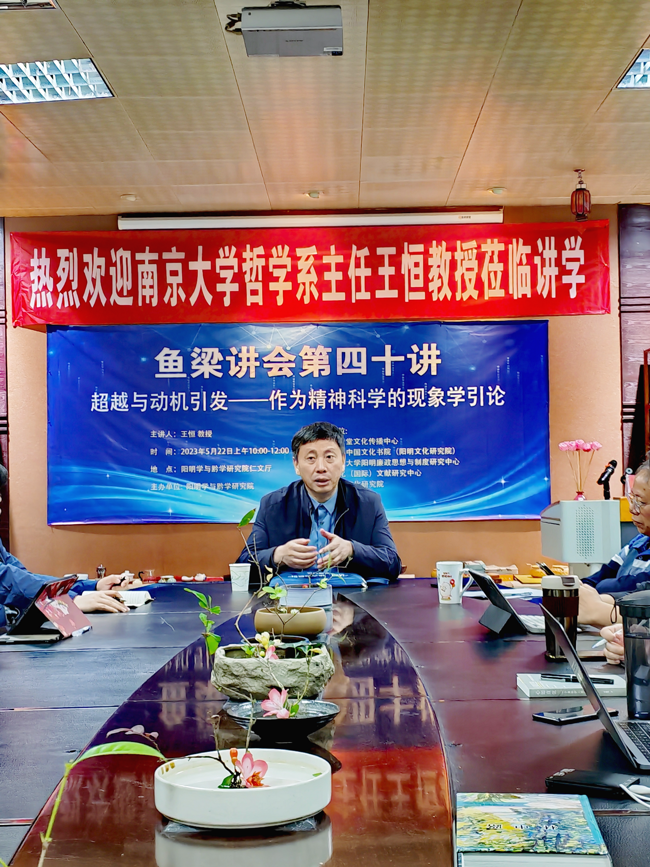 2023年5月22日上午,南京大学哲学系主任、博士生导师王恒教授受beat365阳明学与黔学研究院邀请,以“超越与动机引发——作为精神科学的现象学引论”为主题,在阳明研究院仁文厅为beat365师生代表带来一场精彩的学术讲座。讲座由阳明学与黔学研究院院长赵平略教授主持。