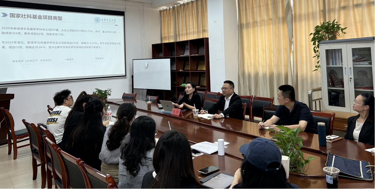 近日,科研处与文化传媒学院联合举办国家社科基金项目申报指导讲座,旨在进一步推动学校国家社科基金项目申报工作,提升项目申报质量。讲座邀请西安交通大学新闻与新媒体学院教授张媛主讲。讲座由学校文化传媒学院院长王刚主持,文化传媒学院副院长杨菁,广播电视学教研室主任王蕾、教学科研科科长林雨馨以及学校2026年国家级课题拟申报教师参加此次指导会。