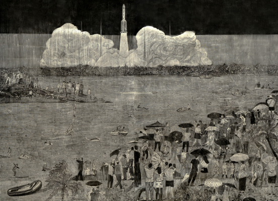 版画作品《征程》是吴建棠主持完成的国家艺术基金2022年度青年艺术创作人才资助项目成果。作品创新探索版画本体语言,立足新时代展现大国成就。