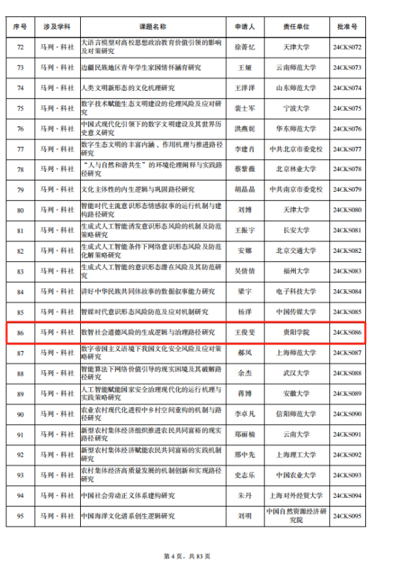 日前,全国哲学社会科学办公室公布了2024年国家社科基金年度项目立项名单,马克思主义学院王俊斐博士/副教授申报的科研项目《数智社会道德风险的生成逻辑与治理路径研究》获得青年项目立项。