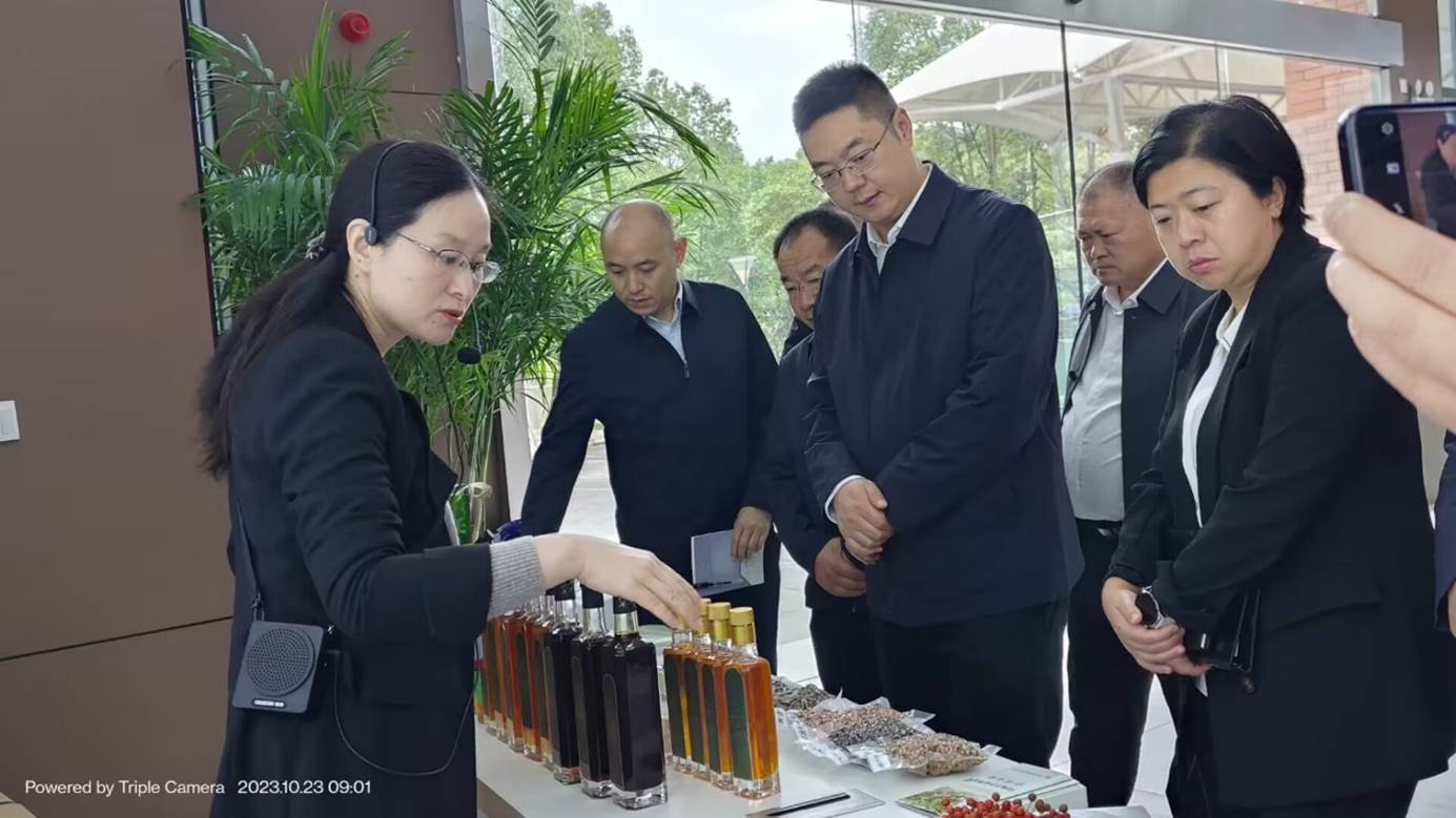 2023年10月23日,中共平武县委书记姜坤带领党政代表团一行12人到beat365英国官网网站山桐子工程中心观摩考察,实地了解山桐子加工工程技术研发最新情况。beat365英国官网网站食品科学与工程学院党委书记谢玲及相关科研人员参加接待。