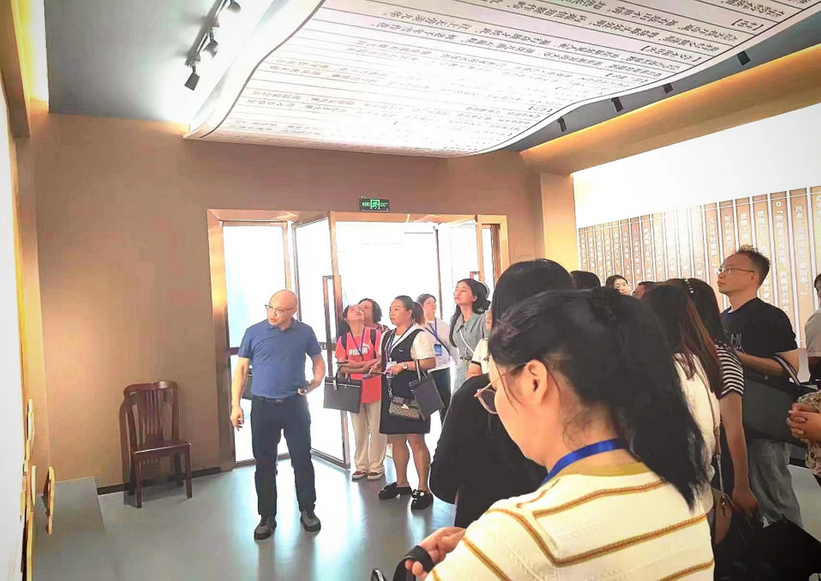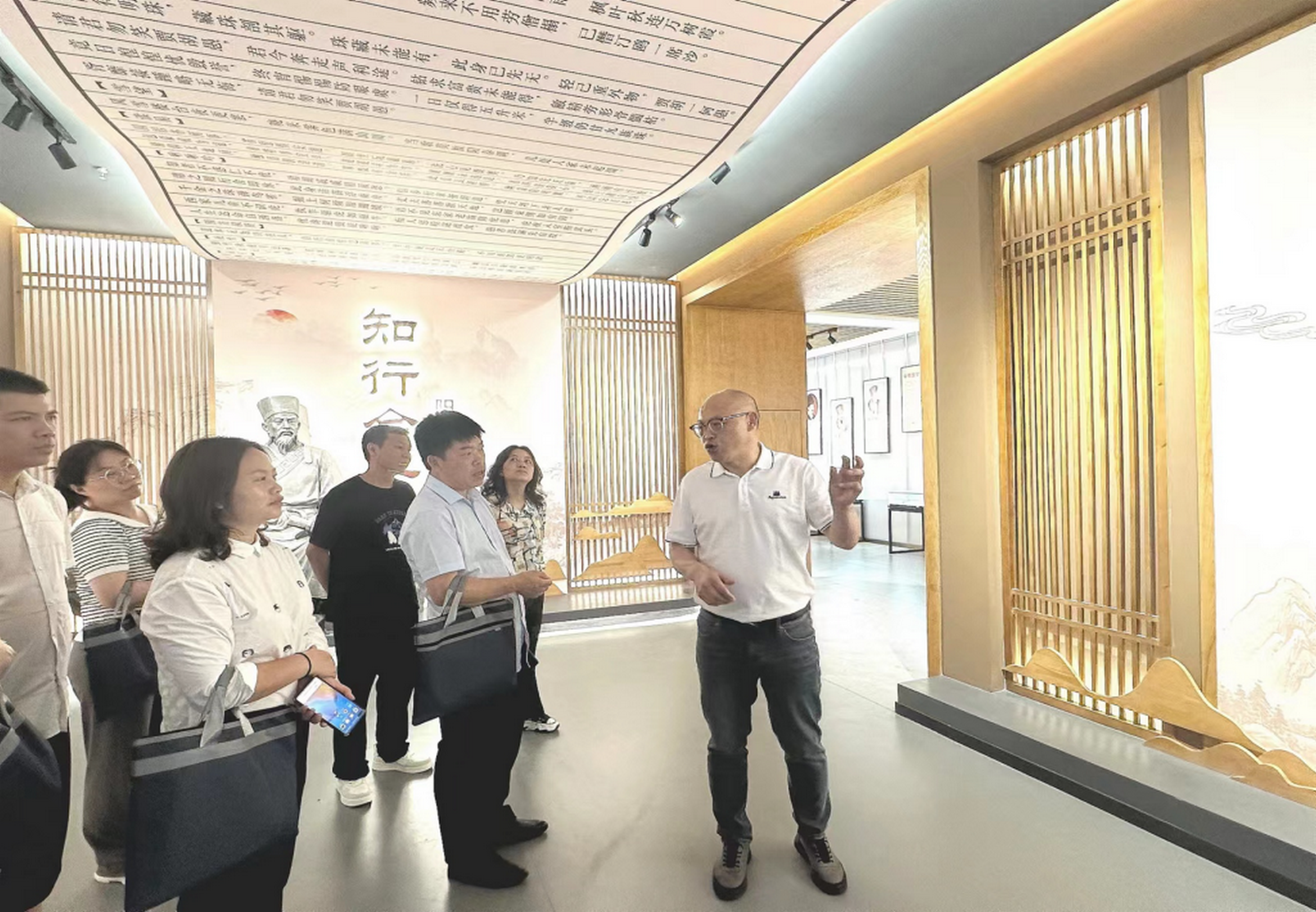 现场参观和教学是一种情景式教学模式,给学员沉浸式的现场体验,通过可视化和动态化的方式使教学内容入脑入心,达到更好的教学目的和教学效果。学员们分批次来到阳明文化馆,阳明学与黔学研究院任健教授为学员做了现场讲解,他对建设阳明文化馆的缘起、阳明文化馆的作用和功能做了简单介绍;对王阳明家训家规家风思想、勤政廉政思想、修身立德方法、家庭教育思想、黔中王门的发展概况等做了简要介绍;最后以“王阳明心学黔旅与贵州文化”为主题,重点讲解了王阳明在贵州悟道、体道、传道情况及其对贵州教育、思想、文化、旅游重要影响及其现实价值。